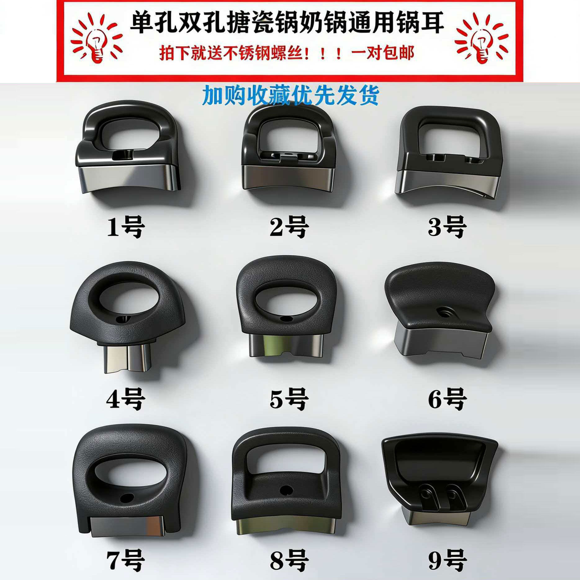 📚 单孔双孔通用锅耳朵不锈钢螺丝高压锅搪瓷锅奶锅把手握把提手