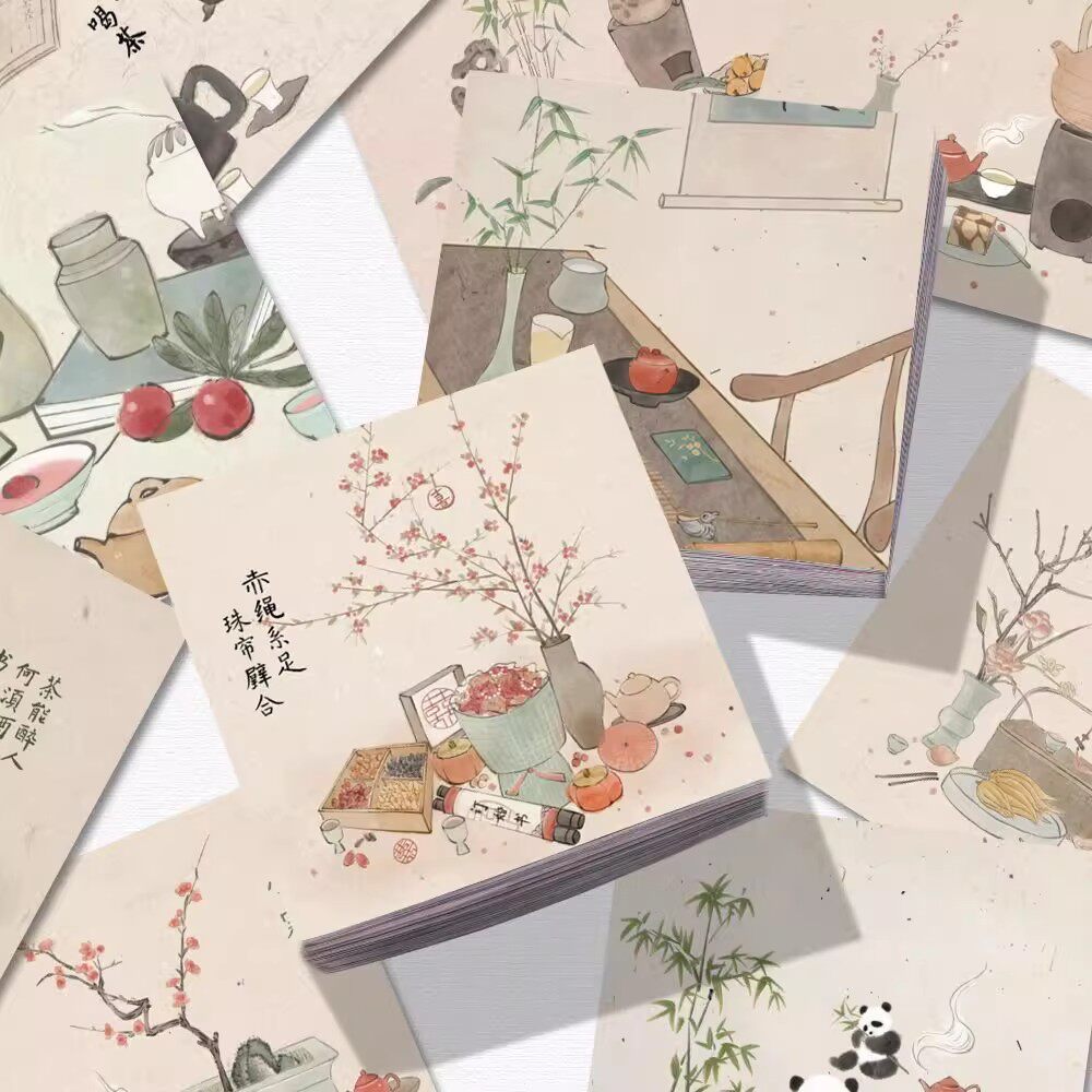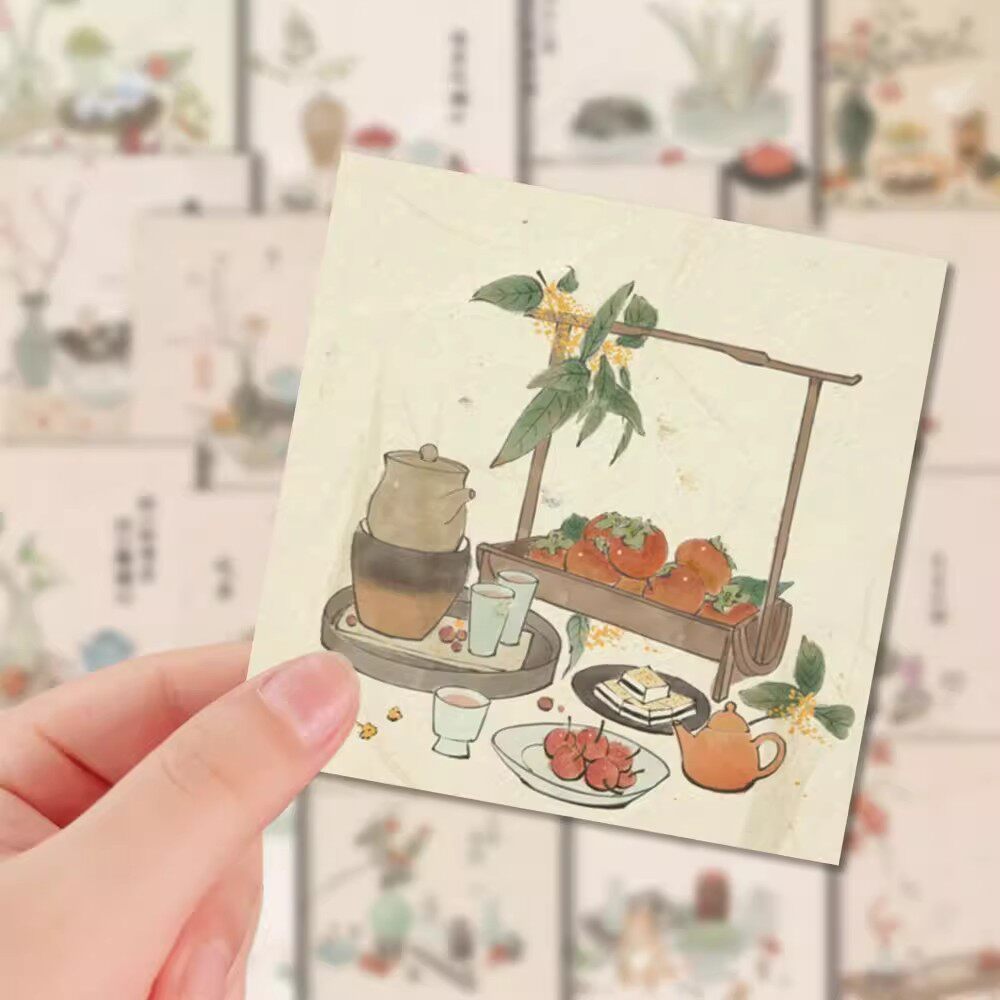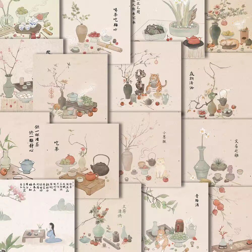 📚 96张国画诗茶画意中国风贴纸DIY手机壳电脑手账防水贴画学生党