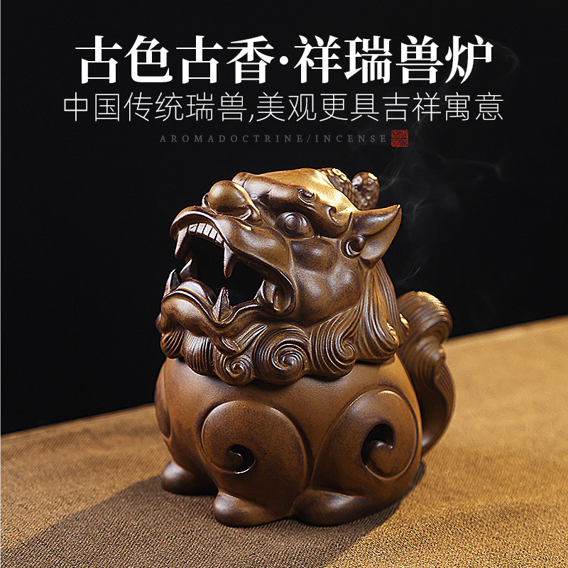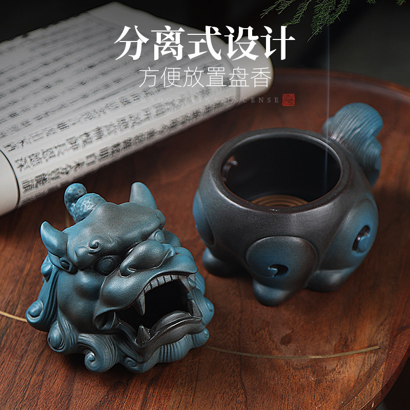 📚 仿古狻猊香薰炉艾熏炉陶瓷熏香炉家用室内摆件复古狮子炉中式香炉