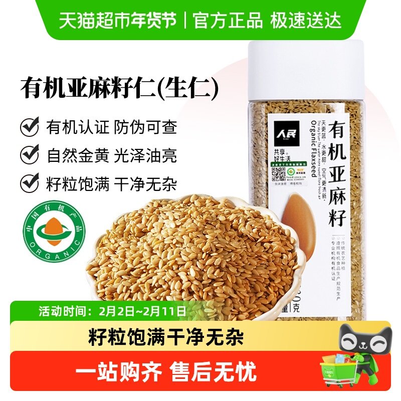 📚 人民食品有机黄金生亚麻籽仁亚麻酸亚麻籽粉亚麻籽油五谷杂粮