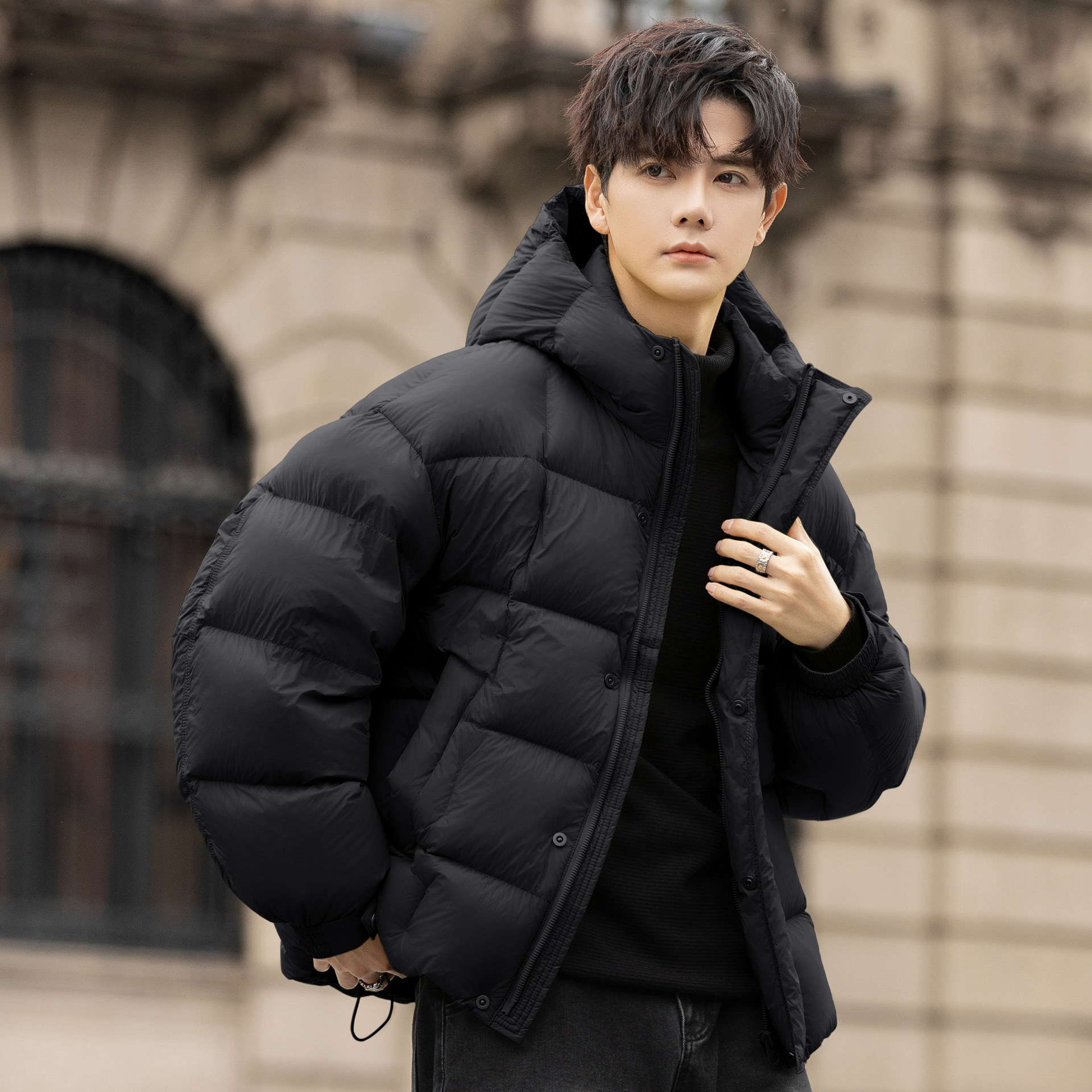 📚 高充绒量羽绒服男士2025新款短款连帽面包服保暖外套防寒青少年潮