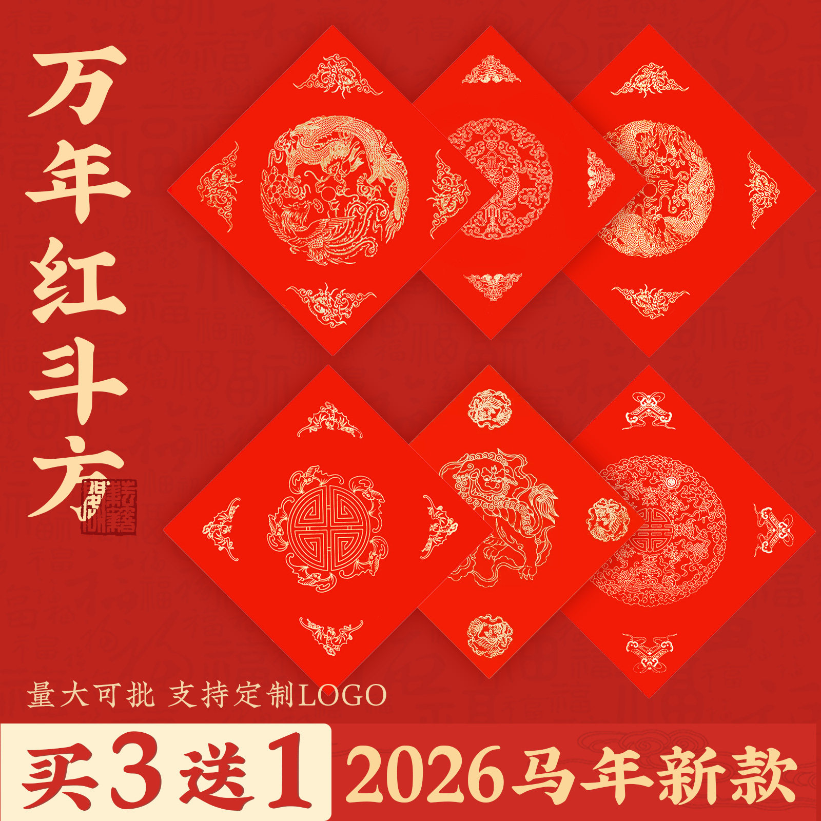 对联万年红斗方专用纸福字