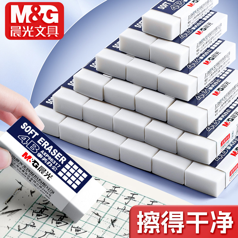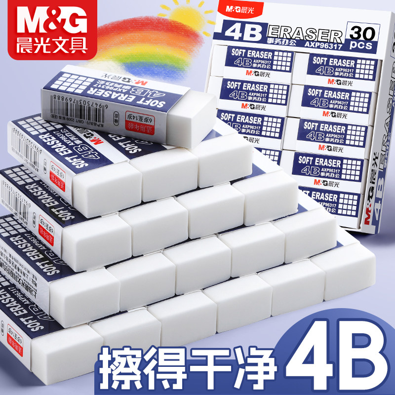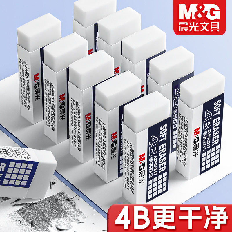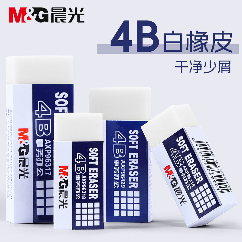 📚 晨光4B橡皮擦小学生专用白橡皮无屑不留痕擦的干净幼儿园美术2B象皮檫绘图考试一年级用擦铅笔字素描文具用品