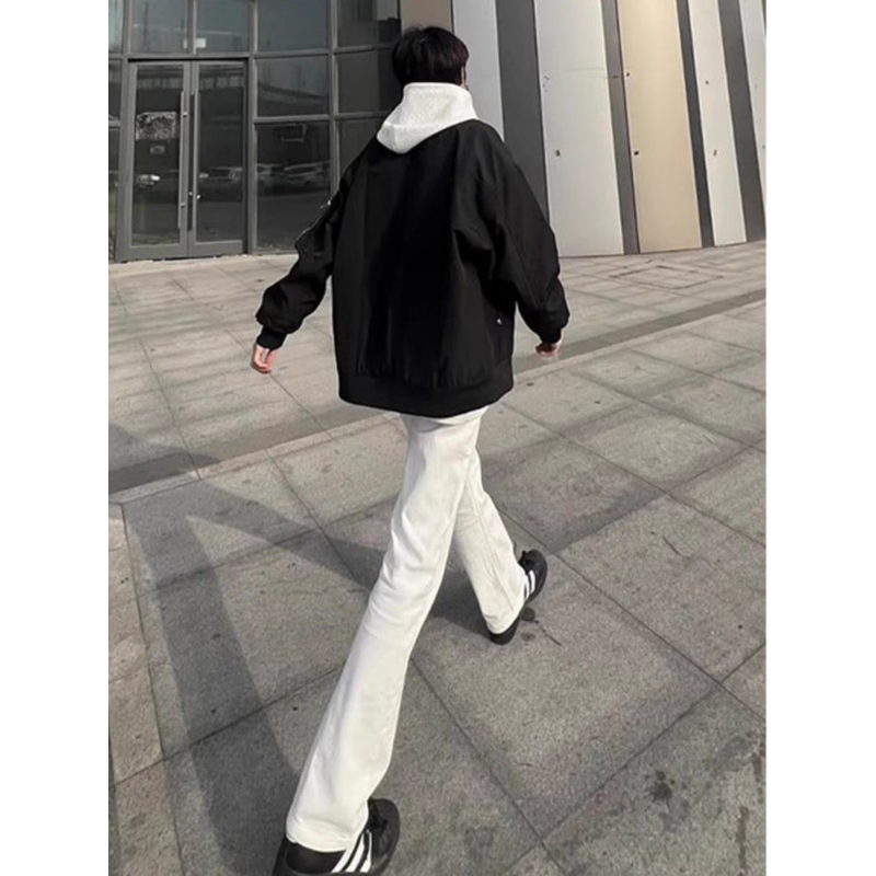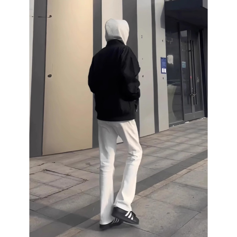 📚 190高个子男加长版微喇裤秋冬款加绒加厚白色牛仔裤120cm修身显瘦