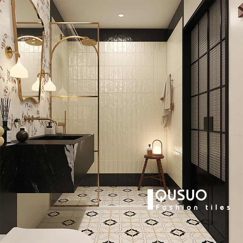 📚 趣所 中古风海伦娜卫生间瓷砖小花砖 复古黑白浴室厕所墙砖地砖