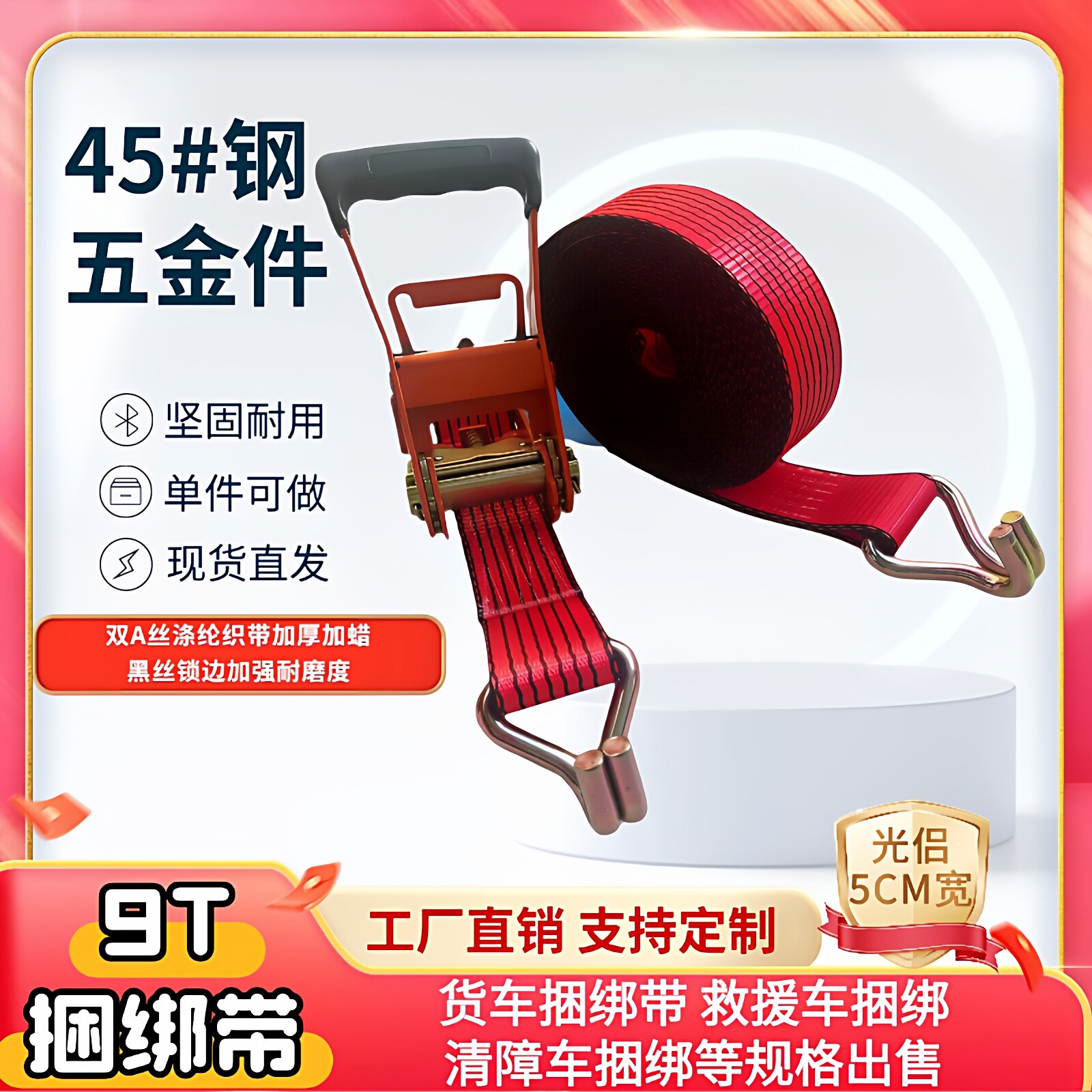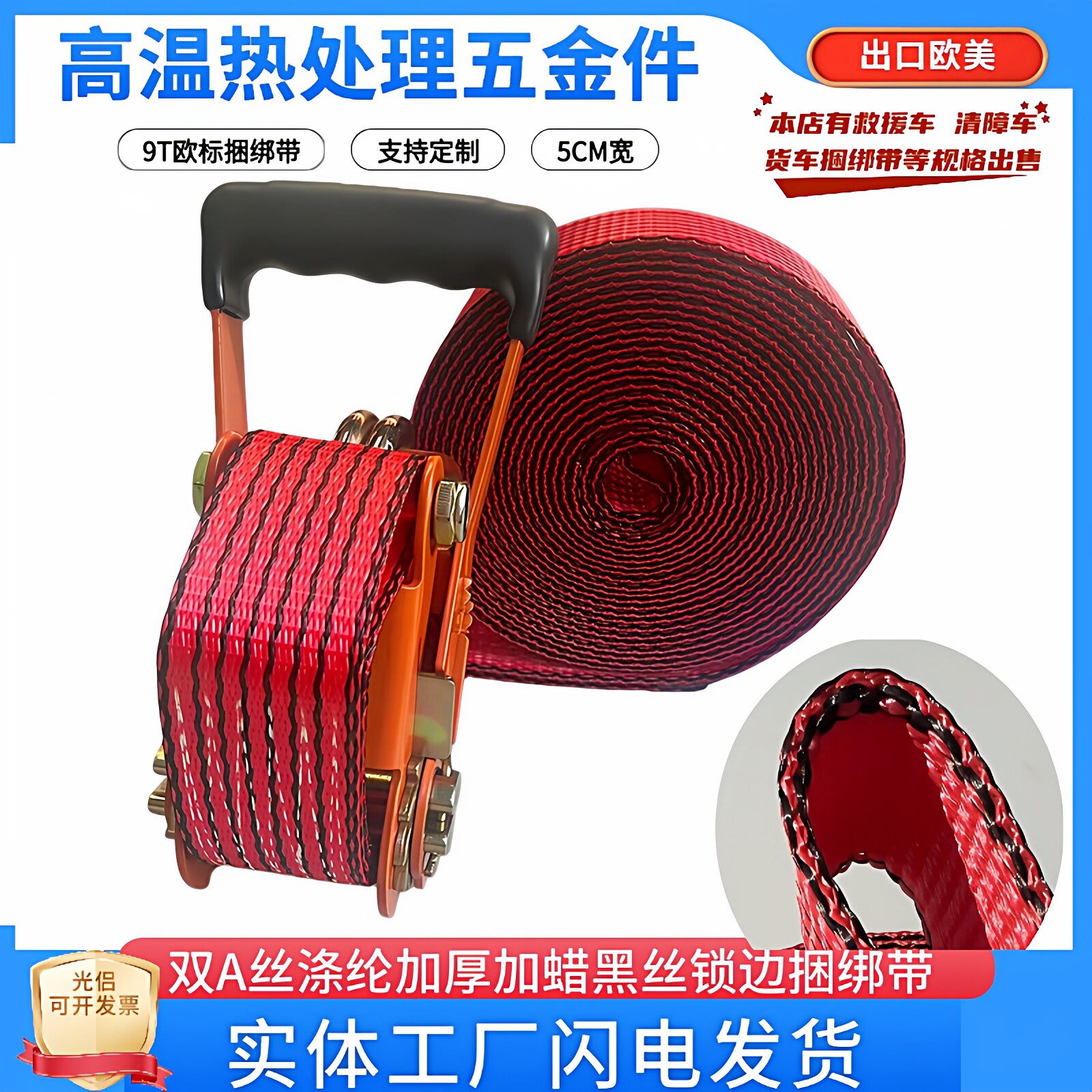 📚 货车捆绑带加厚拉紧器绳子绑带收紧器板带欧标汽车紧绳器5公分9吨
