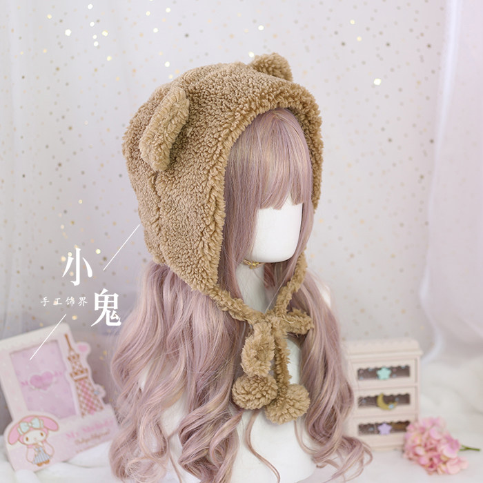 📚 熊耳帽日系甜美可爱小熊耳朵护耳百搭毛绒ins网红包头帽子女冬季