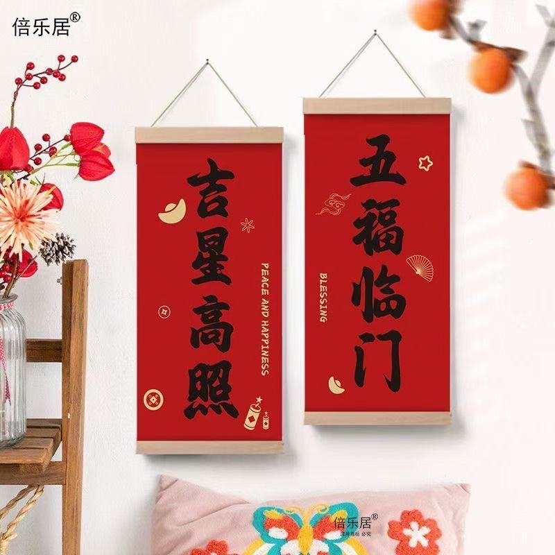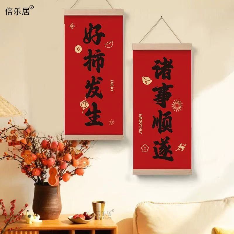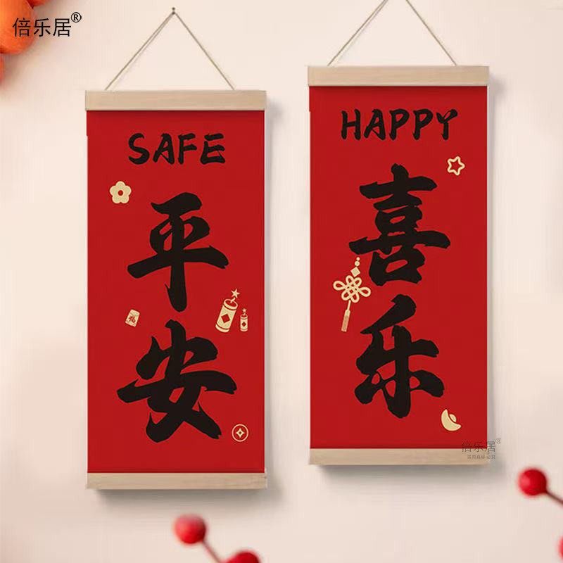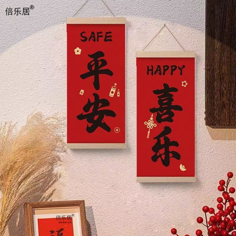 📚 平安喜乐春节装饰画喜庆墙画对联书法氛围布置卧室年画进户门挂画