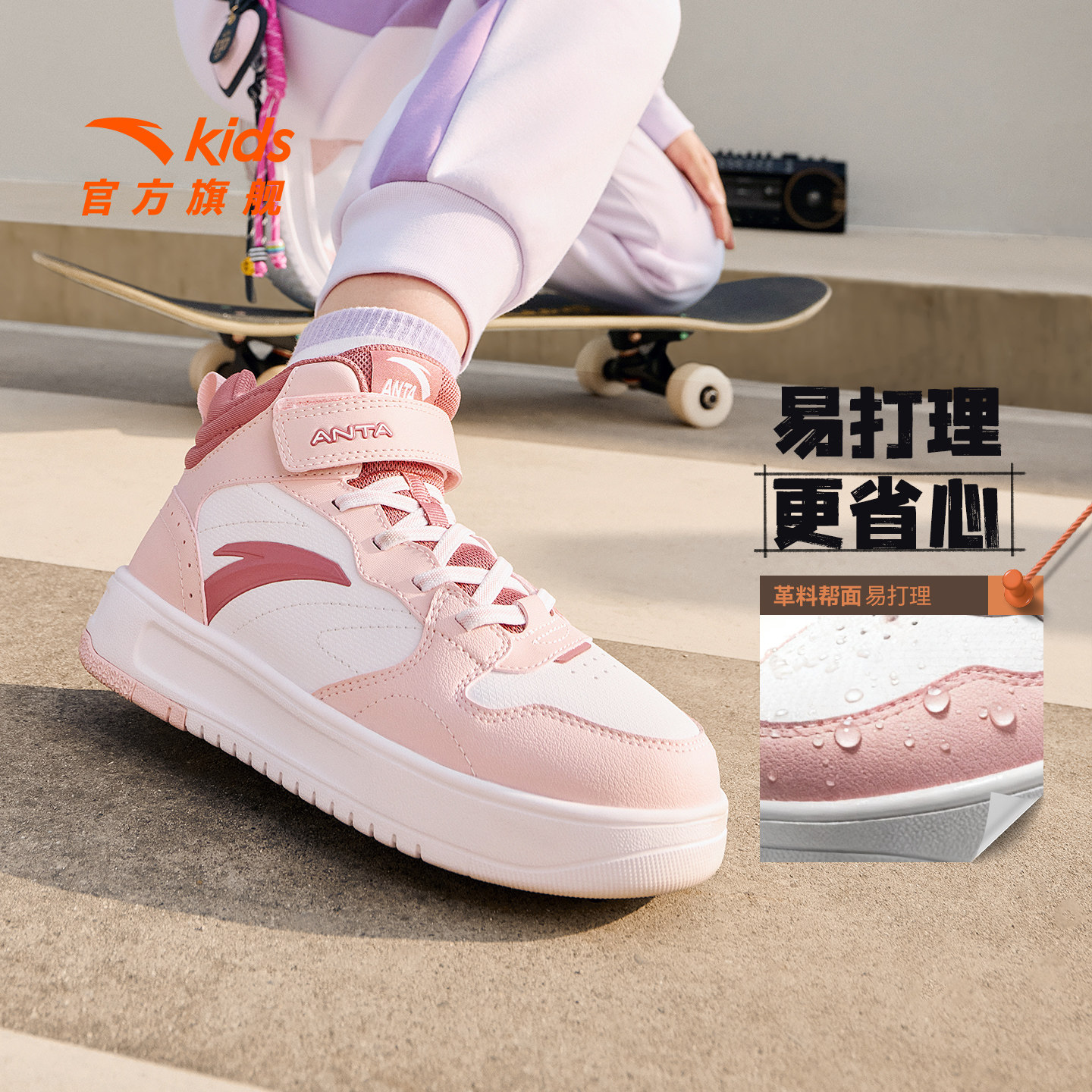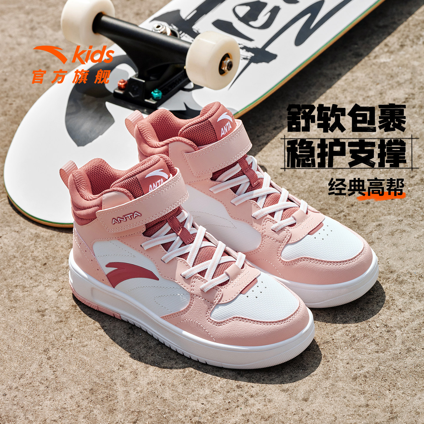 高帮板鞋安踏皮面女童