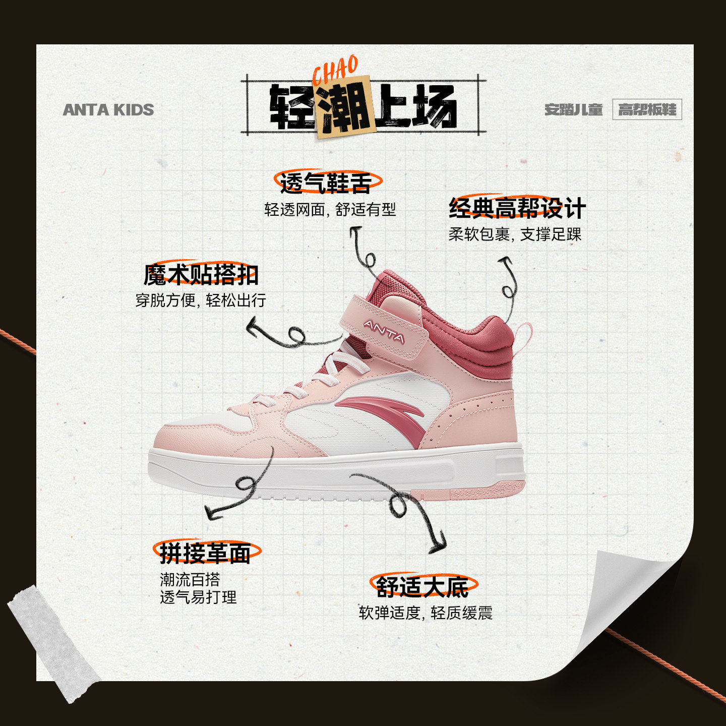 🔥安踏儿童女童板鞋|冬日新品🍂高帮休闲鞋👟好穿不撞款