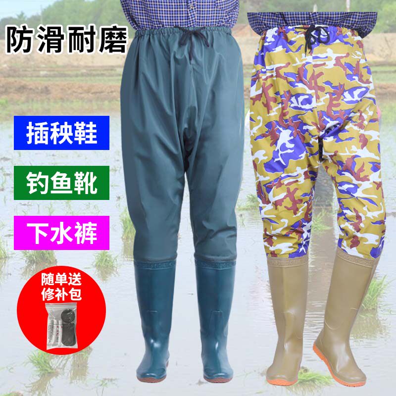 📚 男女下田捕鱼栽秧防水鞋农田鞋加厚加长版长筒平底软底雨靴雨鞋