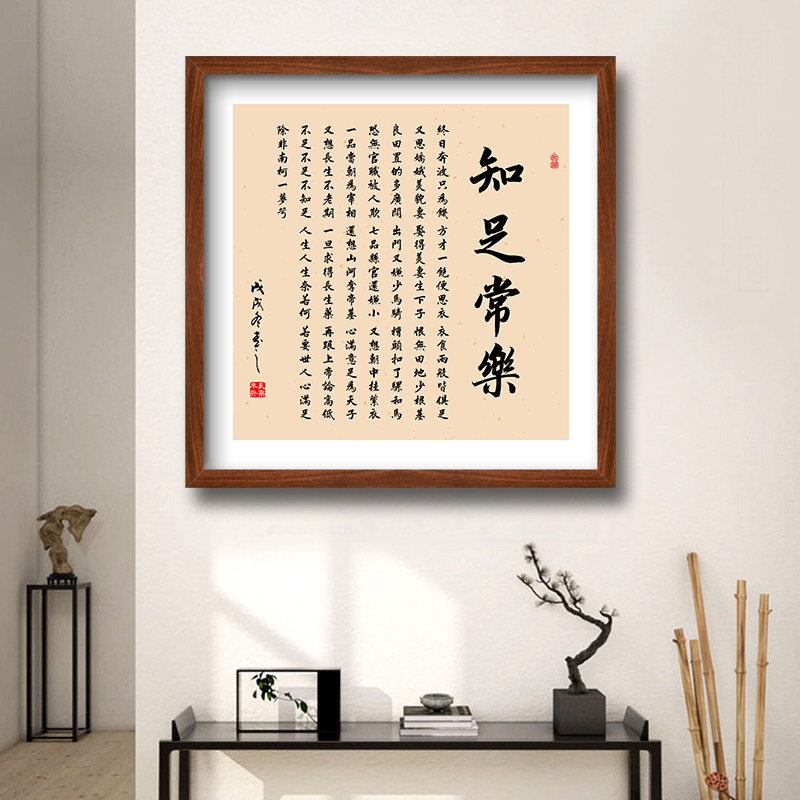 📚 知足常乐字画不足歌挂画有带框书法人生格言复古中国风禅意装饰画