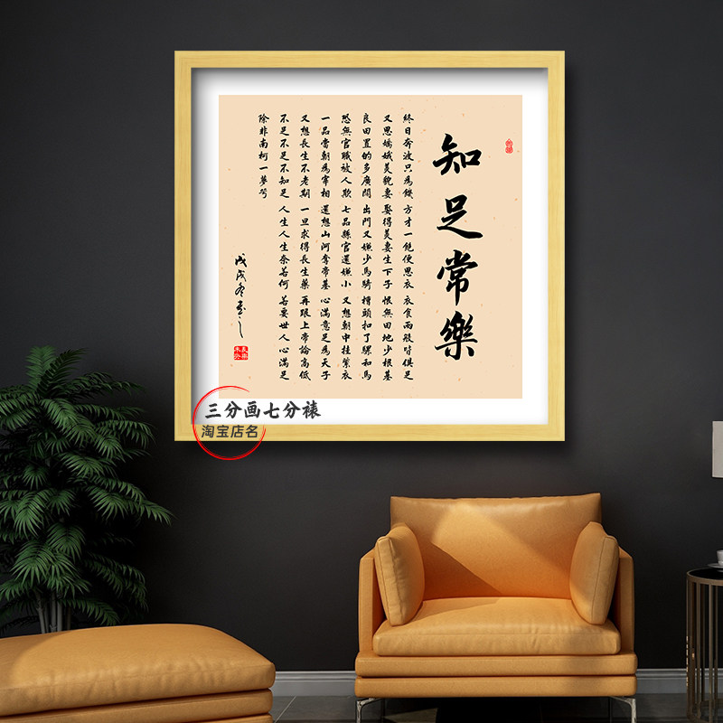 69¥ HU108 pDzqUMV1IJH¥ https://m.tb.cn/h.7yp8Onz 知足常乐字画不足歌挂画有带框书法人生格言复古中国风禅意装饰画 --------------------- 【原售价】68元 【现售价】68元。