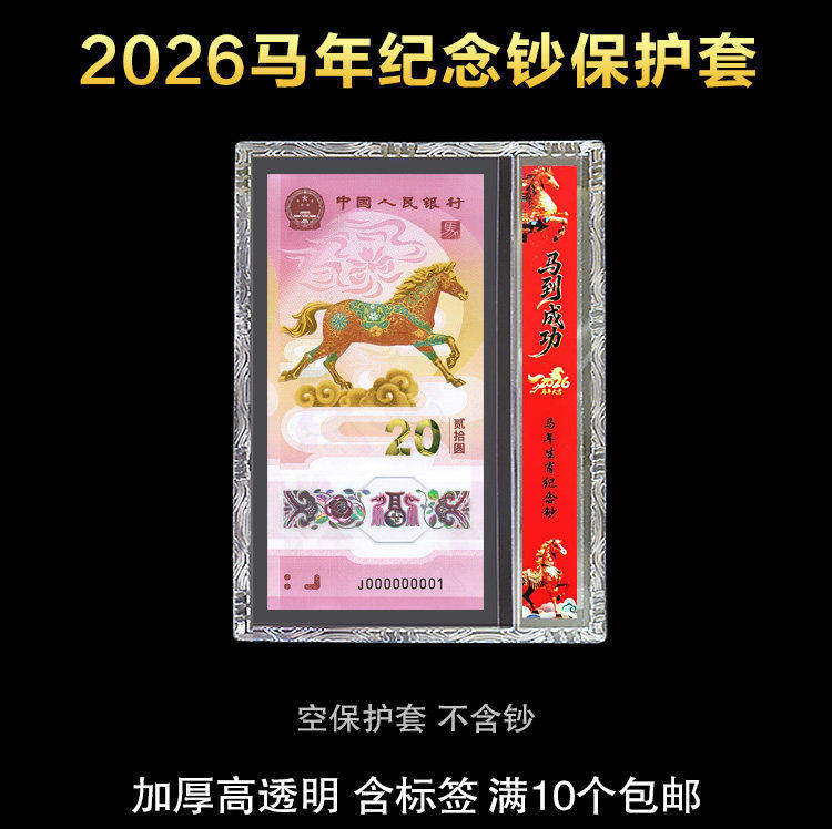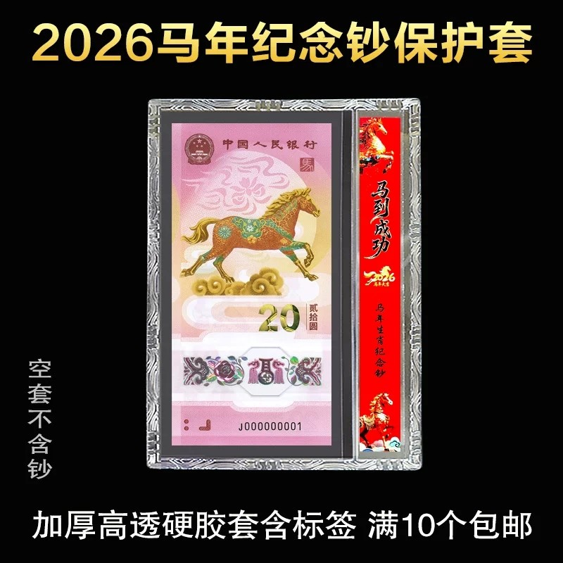 📚 2026年生肖马纪念钞硬胶套贺岁龙钞透明保护套纸币人民币收藏册钱币标签硬夹保护袋1张装