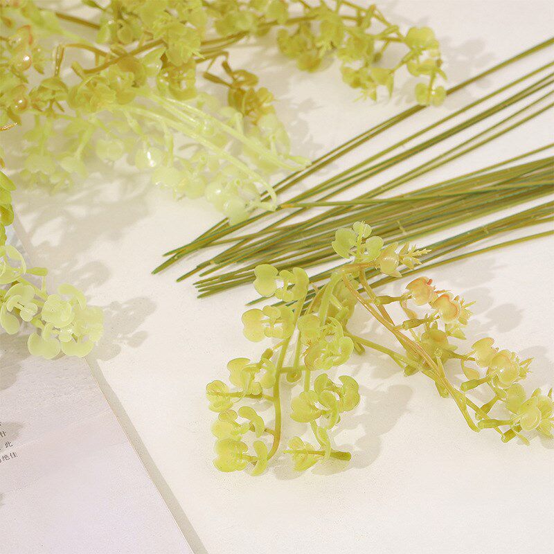 📚 塑料铁丝配件尤加利顶金钱叶杆子双色绿色加工定 制仿真植物