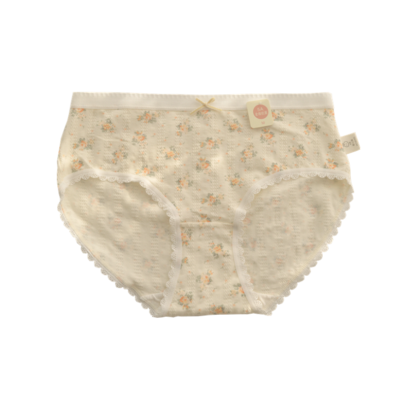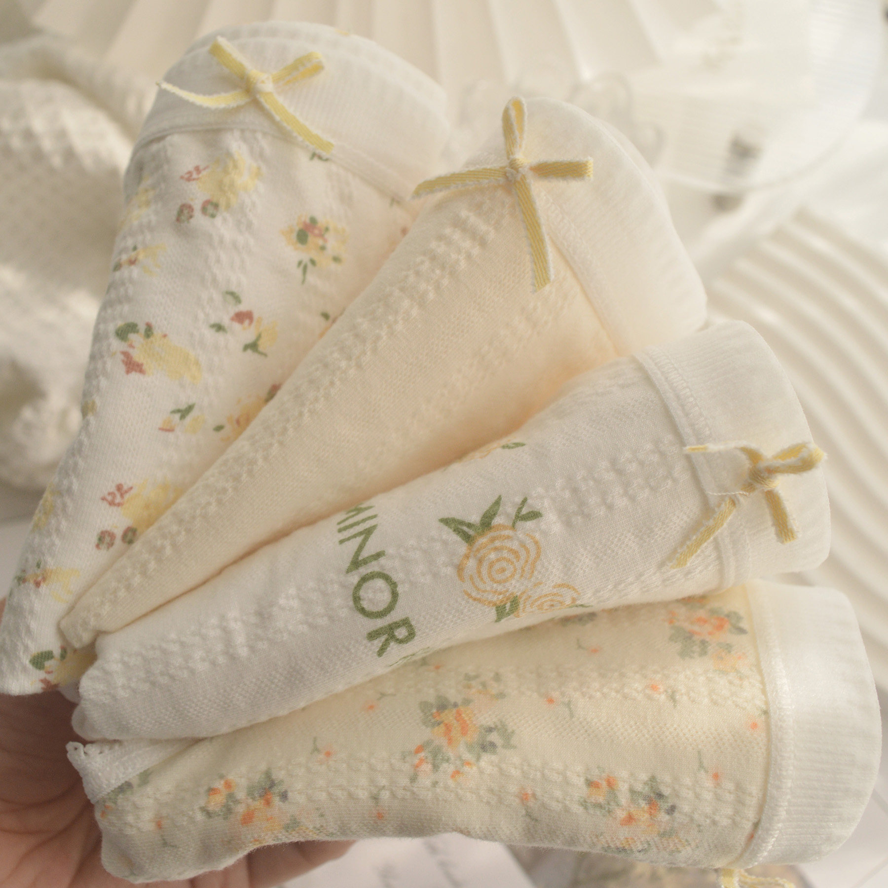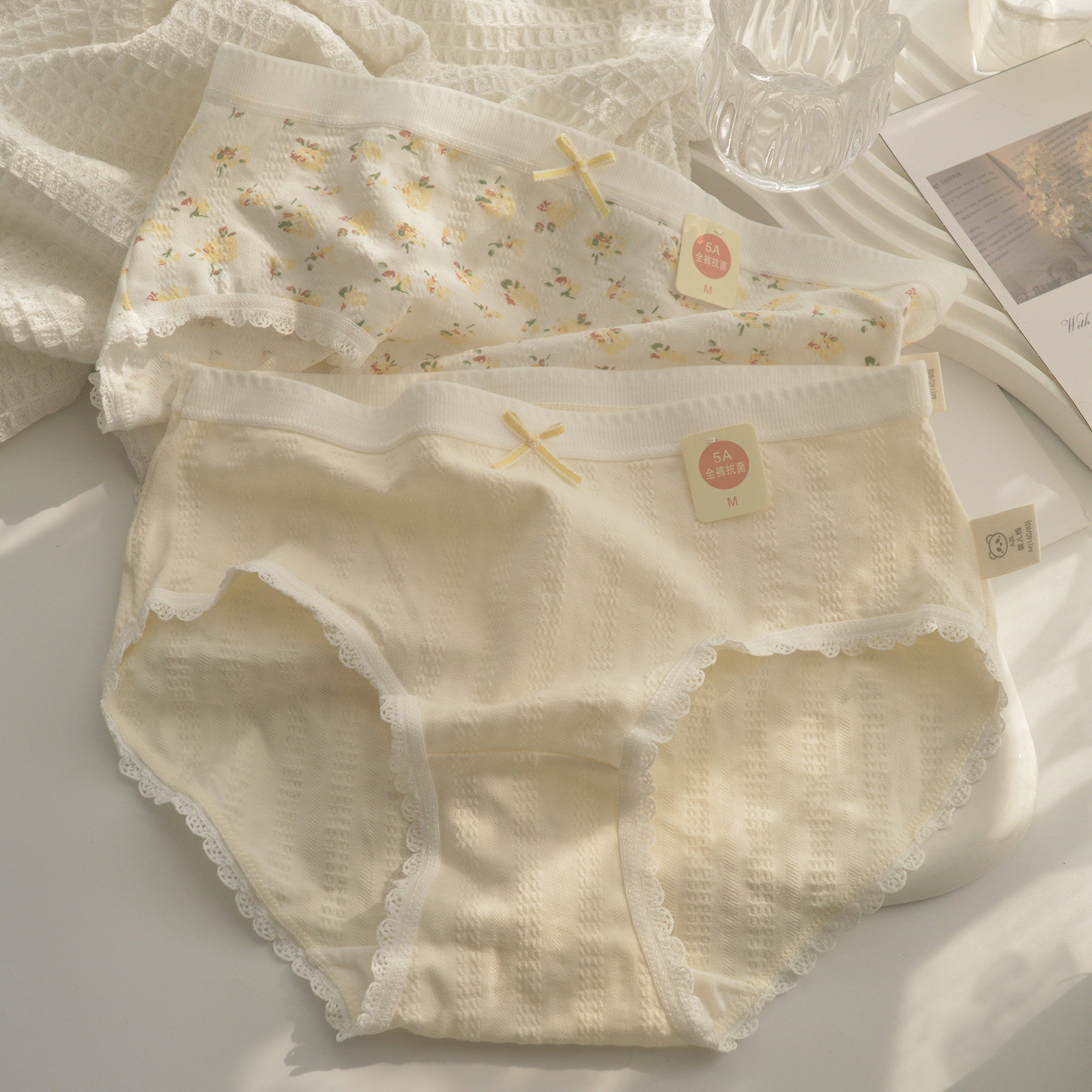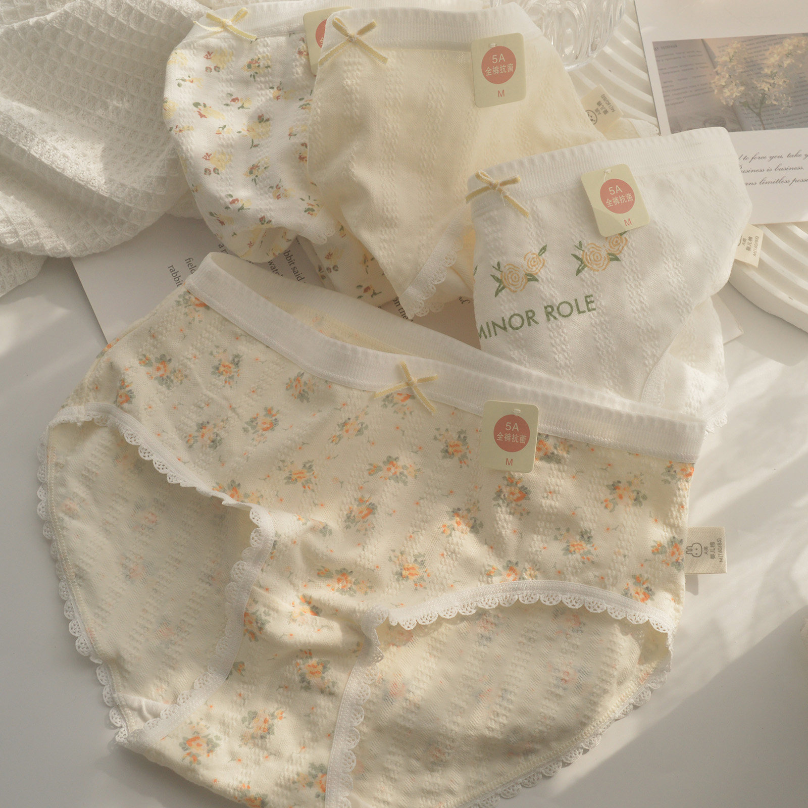 📚 5A抗菌婴儿棉4条乳黄碎花甜美纯欲内裤女纯棉少女中腰学生三角裤