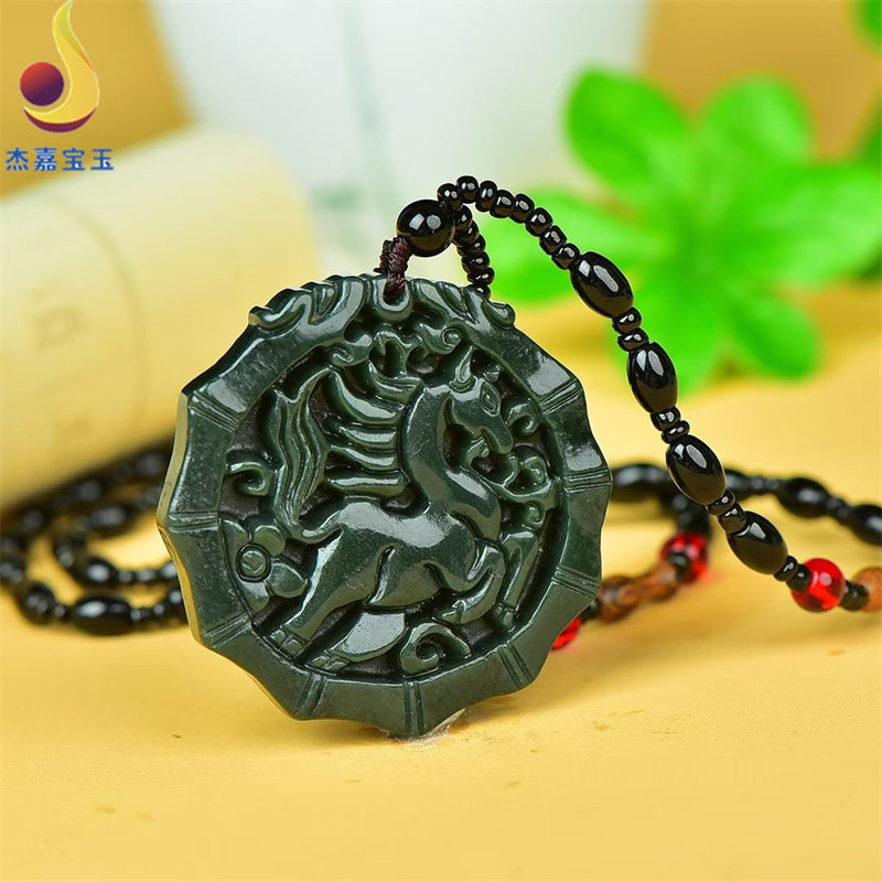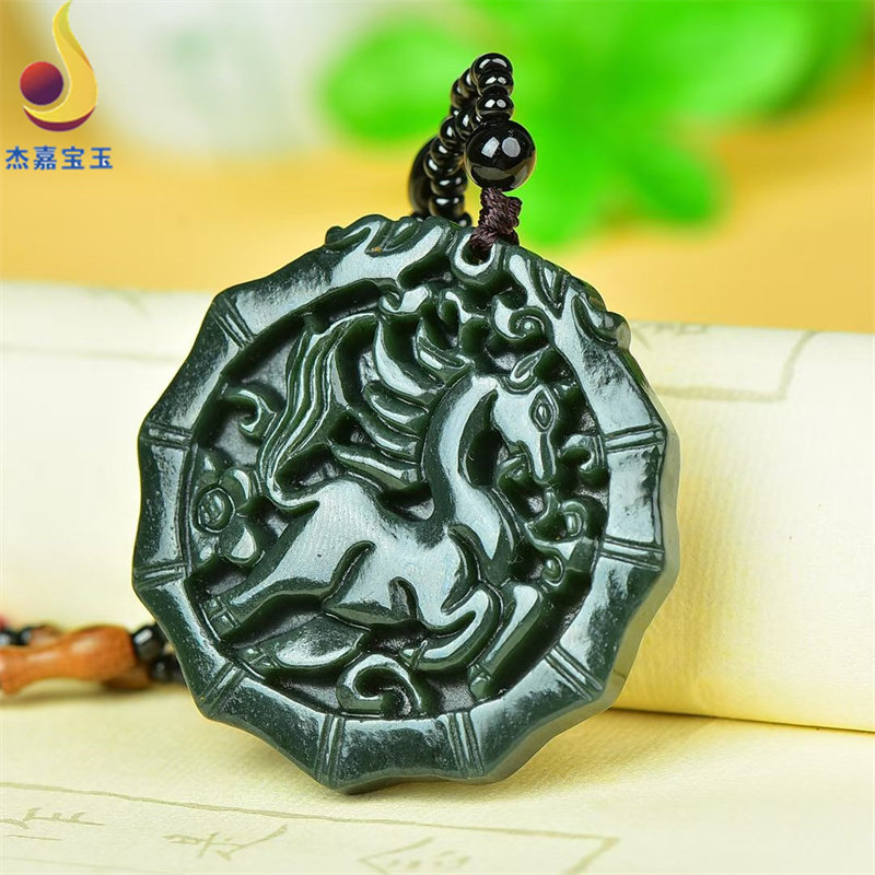 📚 【马上有钱】天然和田玉青玉吊坠男女款生肖马马上发财玉挂件礼物
