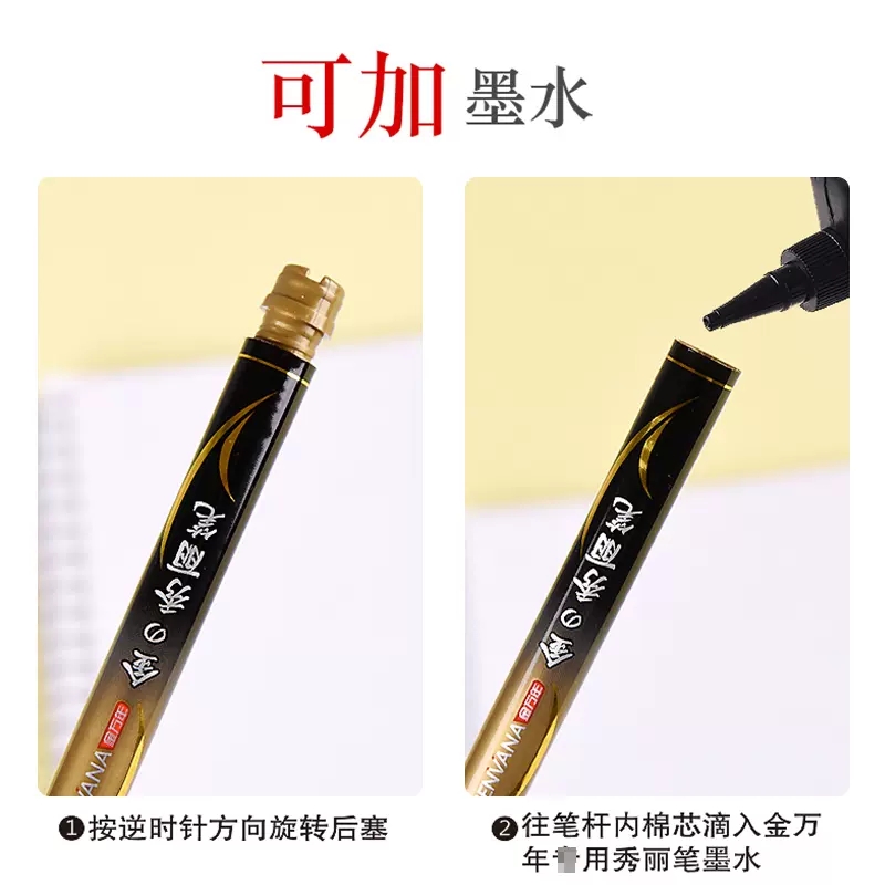 📚 金万年金色秀丽笔大楷写金字钢笔式毛笔软笔抄经金笔软头金墨笔