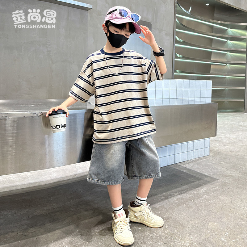 📚 男童套装夏装2026新款儿童条纹衣服夏季大童运动短袖男孩帅气时髦