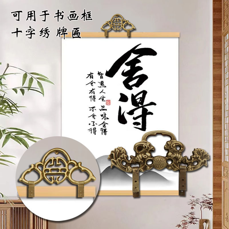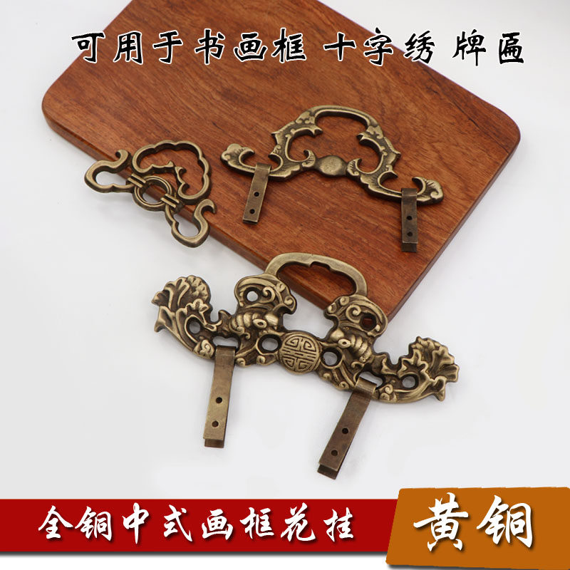 📚 中式仿古铜配件牌匾相框字画挂钩画框镜框十字绣挂画钩画装饰纯铜