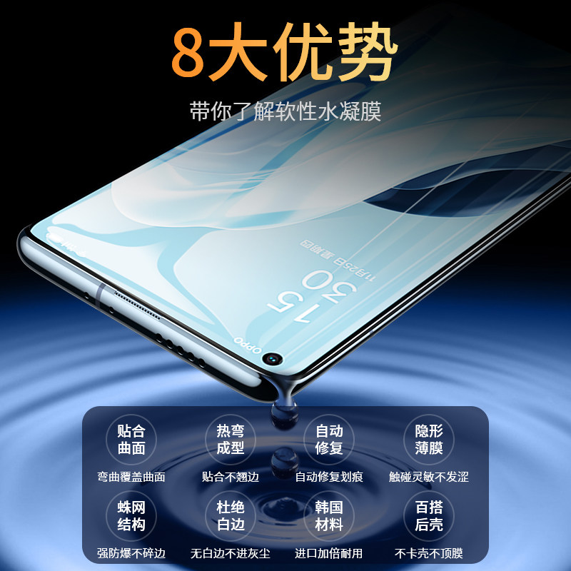 📚 适用opporeno7pro水凝膜oppo手机reno75g钢化膜opppreno7全屏ooporeno保护poopreno屏幕pfjm10软膜rone7se5g