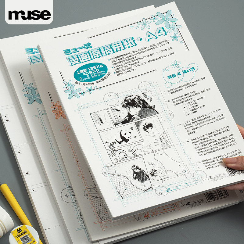 📚 日本MUSE漫画动漫原稿纸A4/B4无带刻度135g110g投稿纸白稿纸学生绘画练习纸漫画专用纸漫画分镜纸素描纸