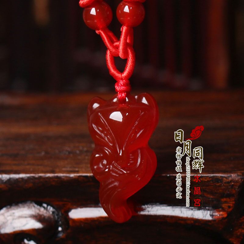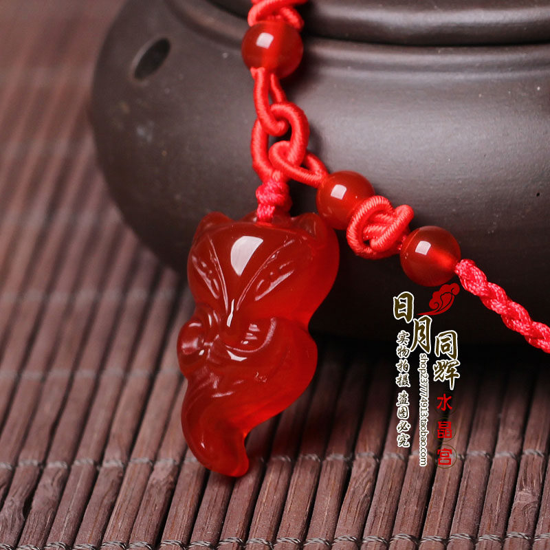 📚 2025年天然红玛瑙狐狸催缘吊坠男女情侣灵狐桃花狐狸项链