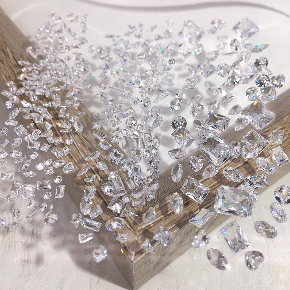 📚 爆闪5A人造锆石冰透白裸钻白色锆石小型号迷你尖底异形美甲指甲钻