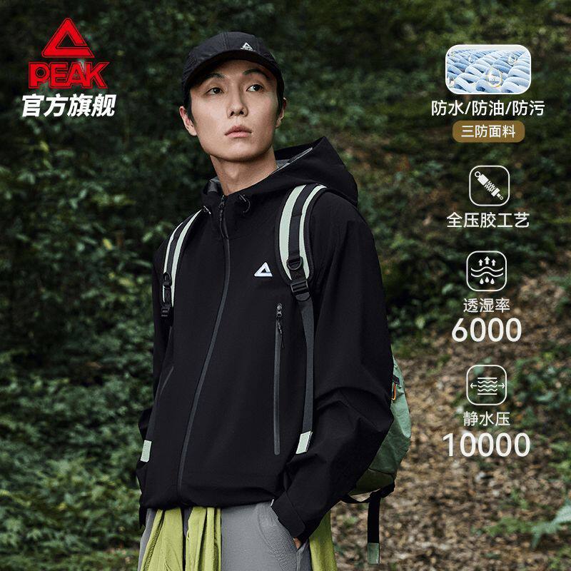 📚 匹克官方正品驭峰甲硬壳冲锋衣男休闲时尚外套防水登山服宽松百搭