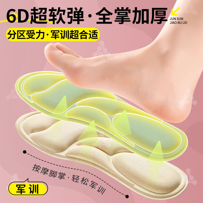 📚 女生军训鞋垫4d记忆海绵加厚超软踩屎感久站不累防脚痛学生男夏季