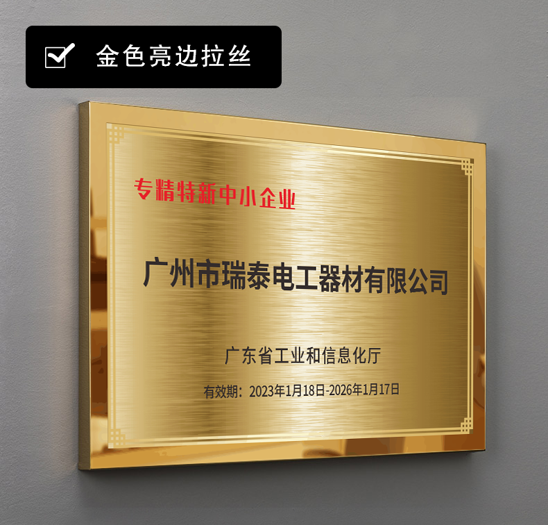 📚 广东省专精特新小巨人企业纯铜牌订做创新型中小企业纯铝牌匾定制