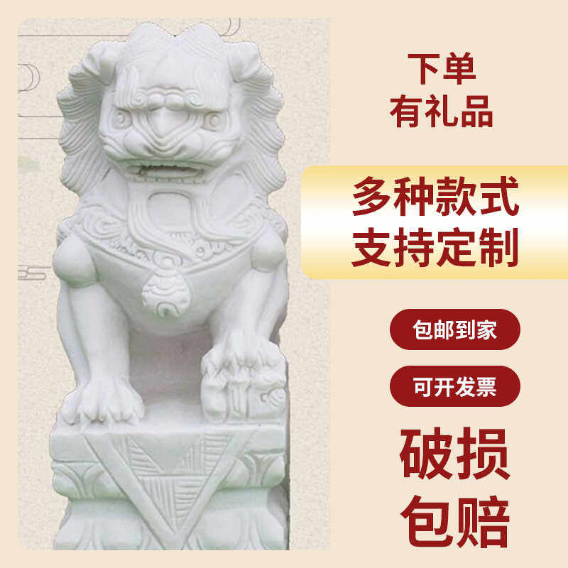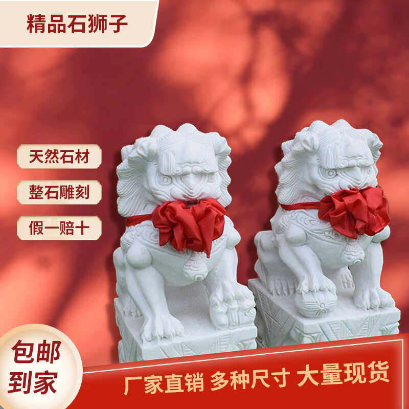📚 天然大门口石狮子一对汉白玉石雕狮子一对精雕看门镇宅墓前石狮子