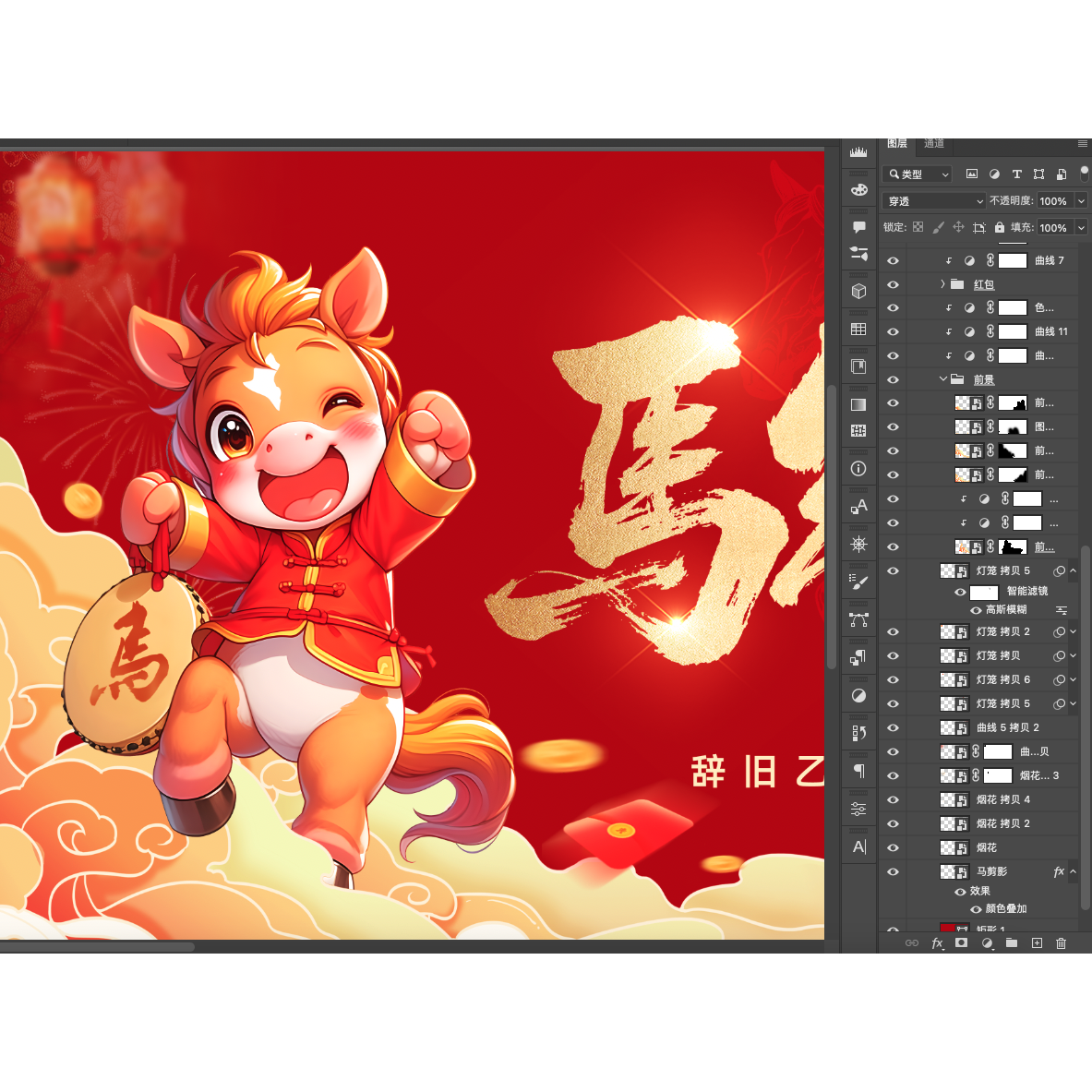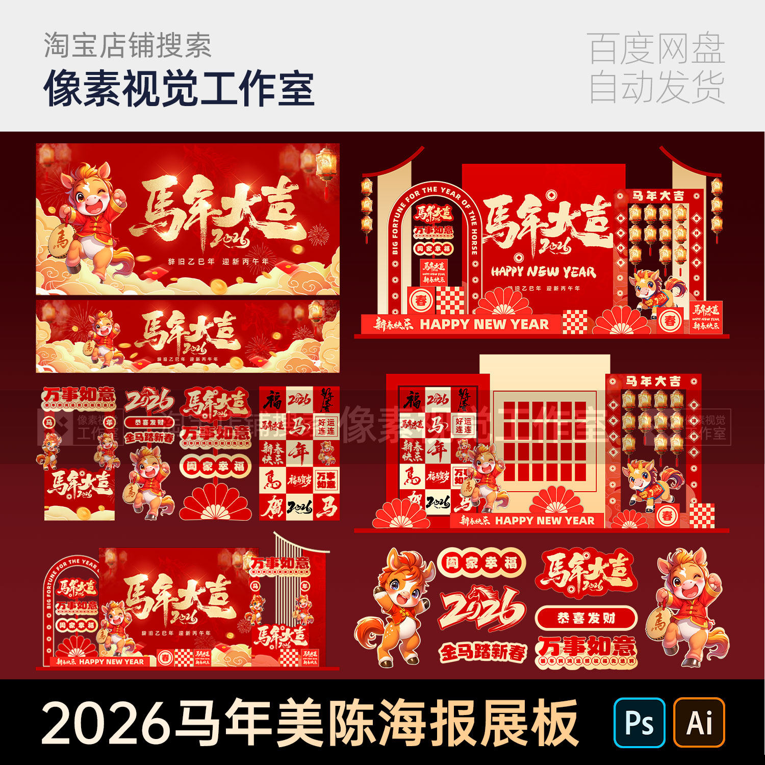 📚 2026马年新年春节元旦除夕商场美陈背景板海报贴纸物料模板素材kv