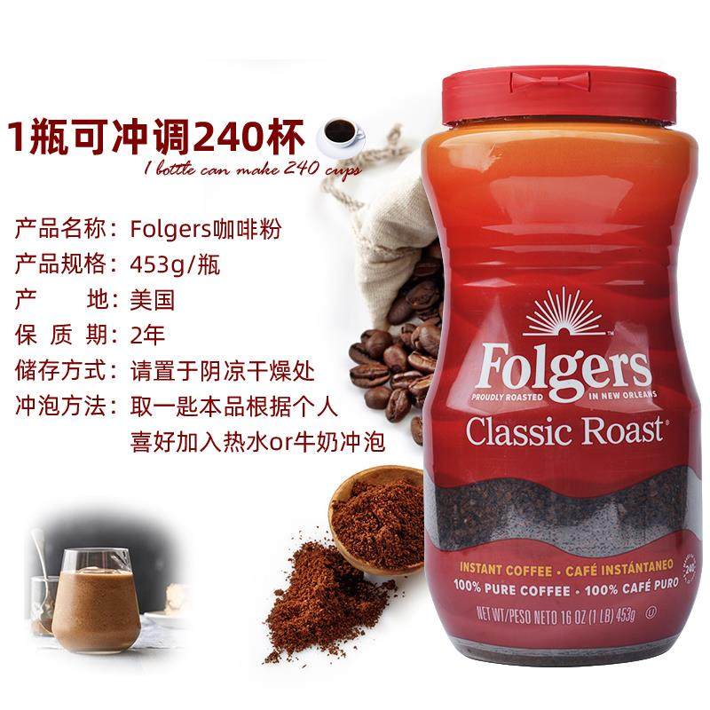 📚 美国原装福爵Folgers Classic Roast Instant Coffee纯黑速溶咖啡