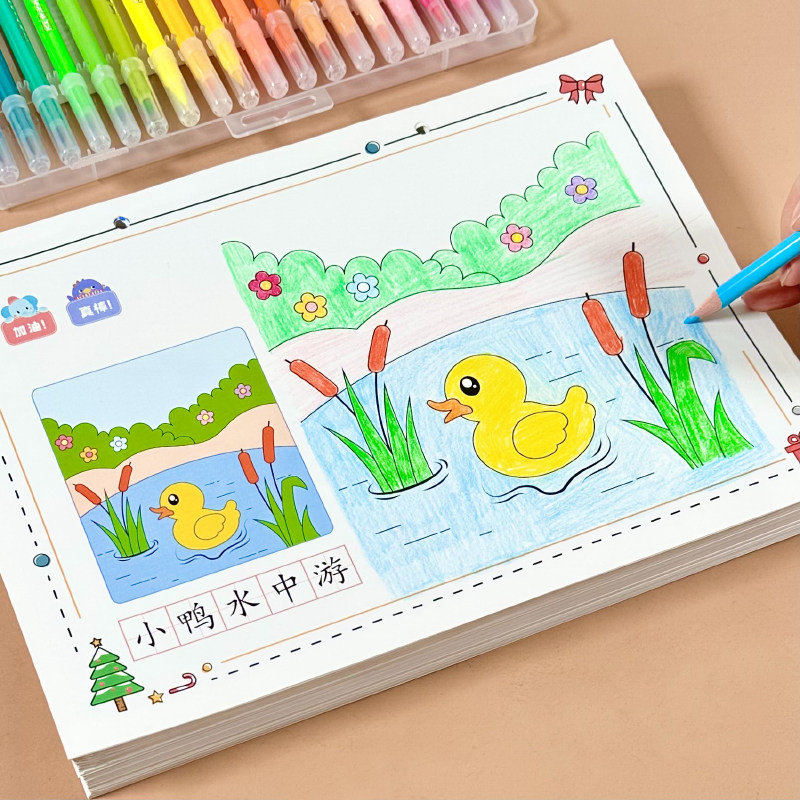 📚 儿童涂色画画本马克笔专用2-3到6岁幼儿园涂鸦填色画a4大本绘画册