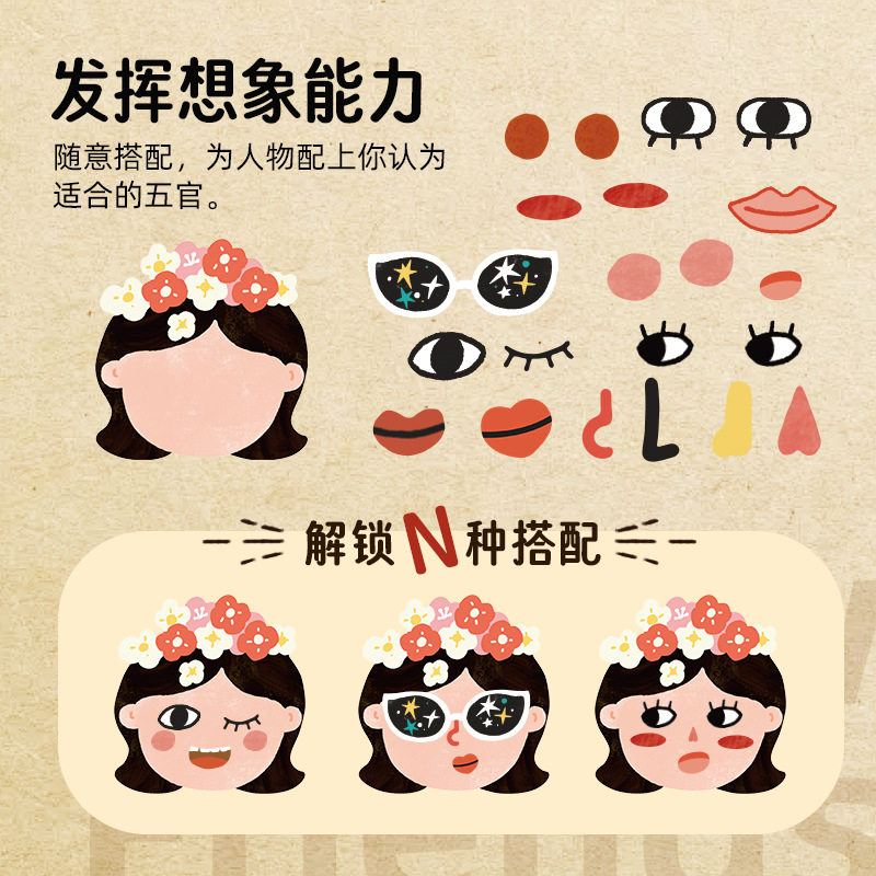 📚 呱比比儿童创意贴纸我的新朋友表情五官贴纸游戏情绪产品专注力