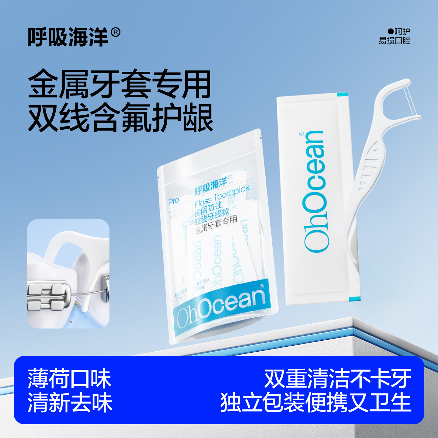 📚 呼吸海洋正畸牙线棒专用含氟双线矫钢剔牙齿签超细家用庭独立包装