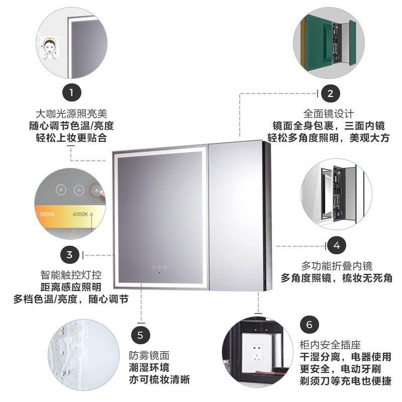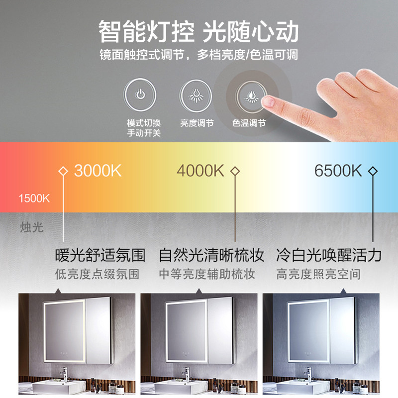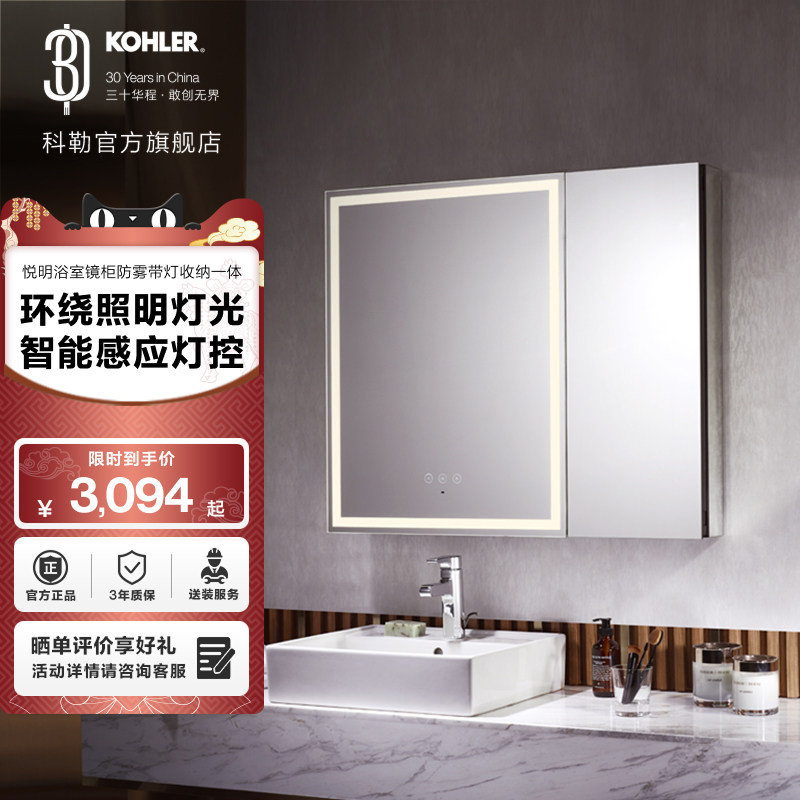📚 科勒悦明浴室美妆镜柜防雾卫生间带灯梳洗化妆镜收纳一体柜29828