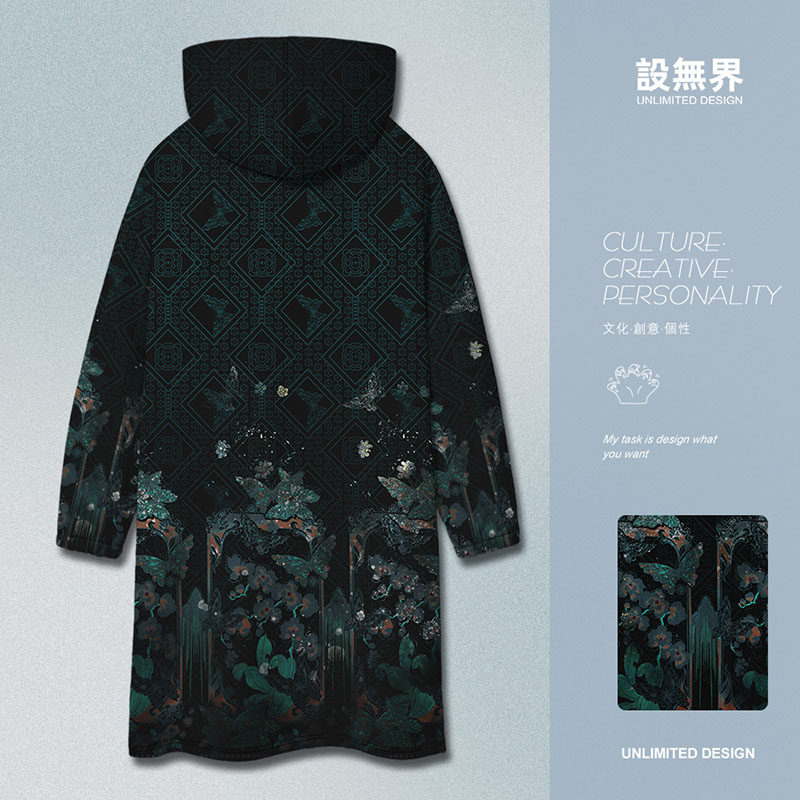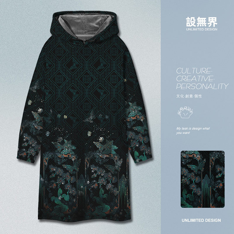 📚 国潮晓梦迷蝶碎影流荧设计感大码中长款卫衣裙女汉服0015设 无界
