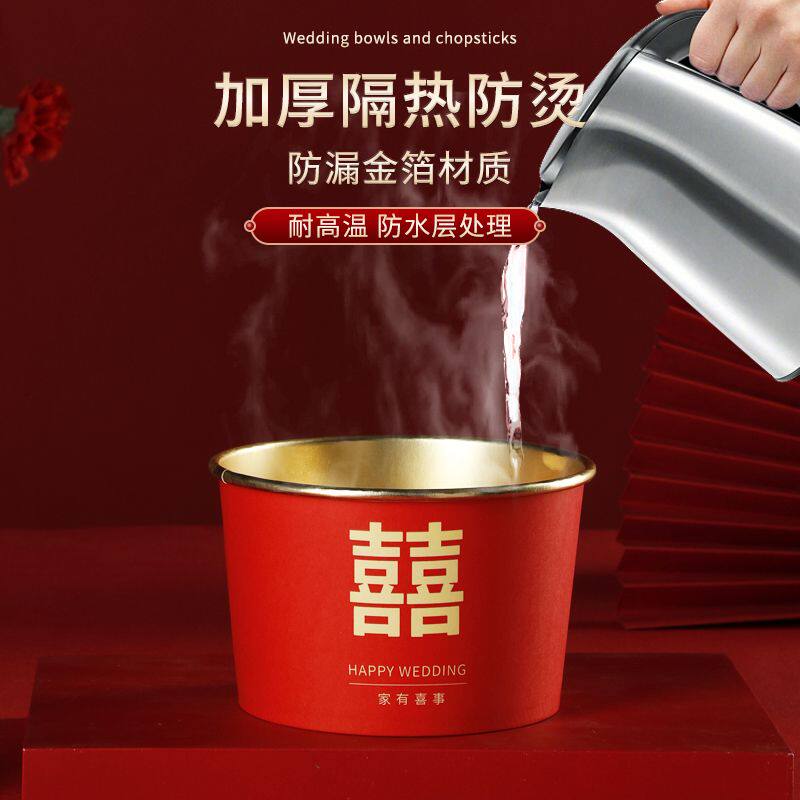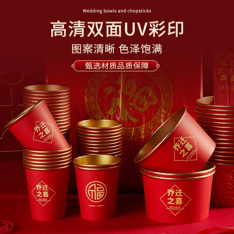 📚 节庆酒席专用一次性碗结婚喜庆金箔家用乔迁纸碗纸杯筷子勺子桌布