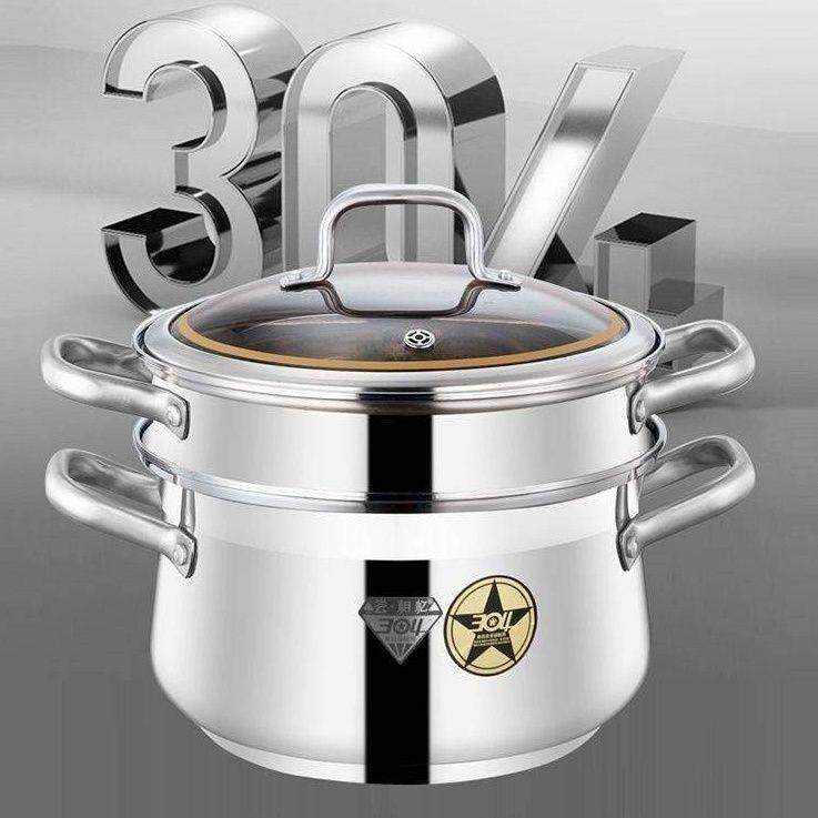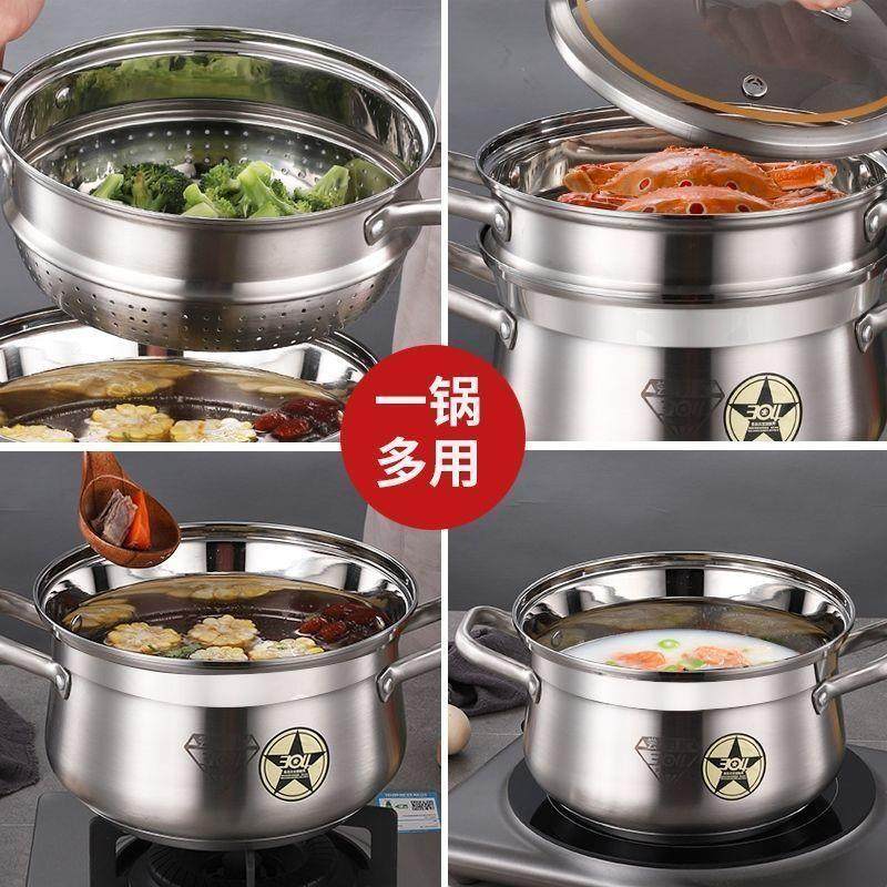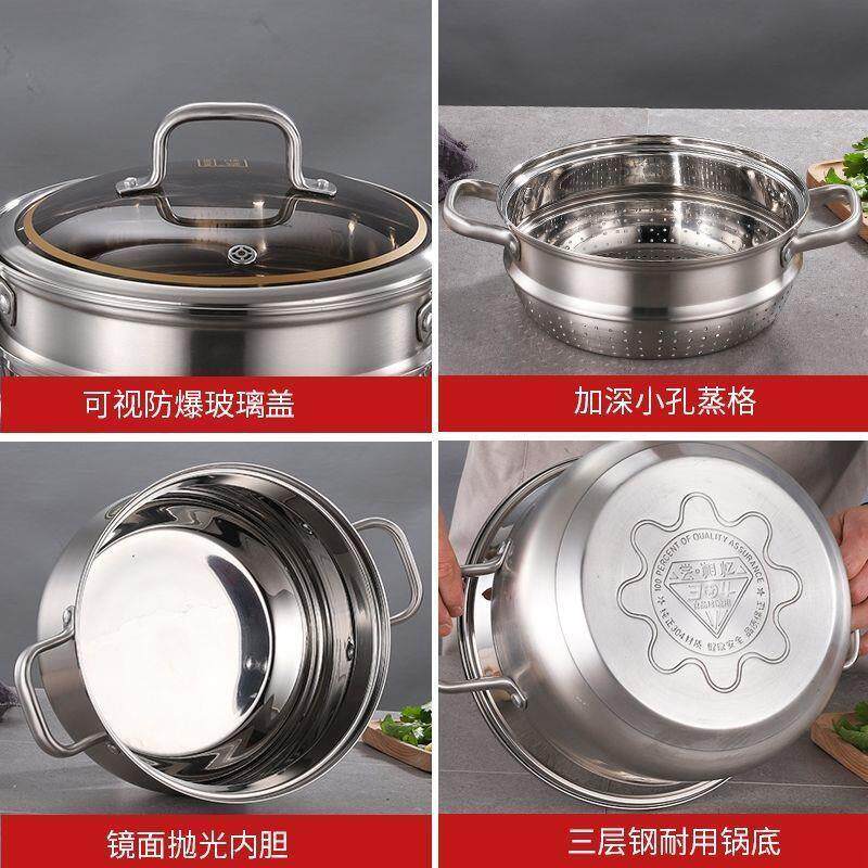 📚 海发尝相忆304不锈钢加厚复底家用电磁炉蒸锅煤气灶多用汤锅蒸锅