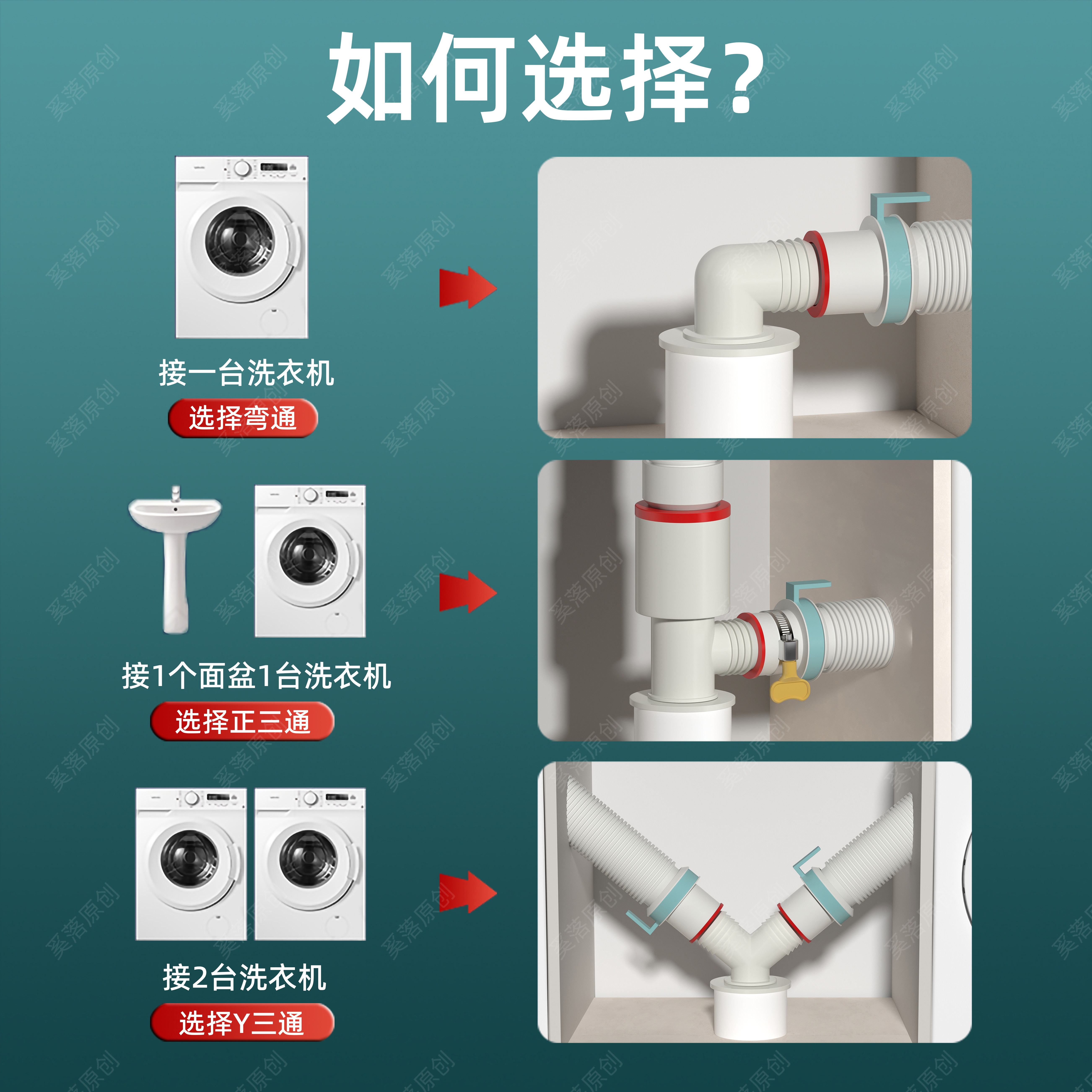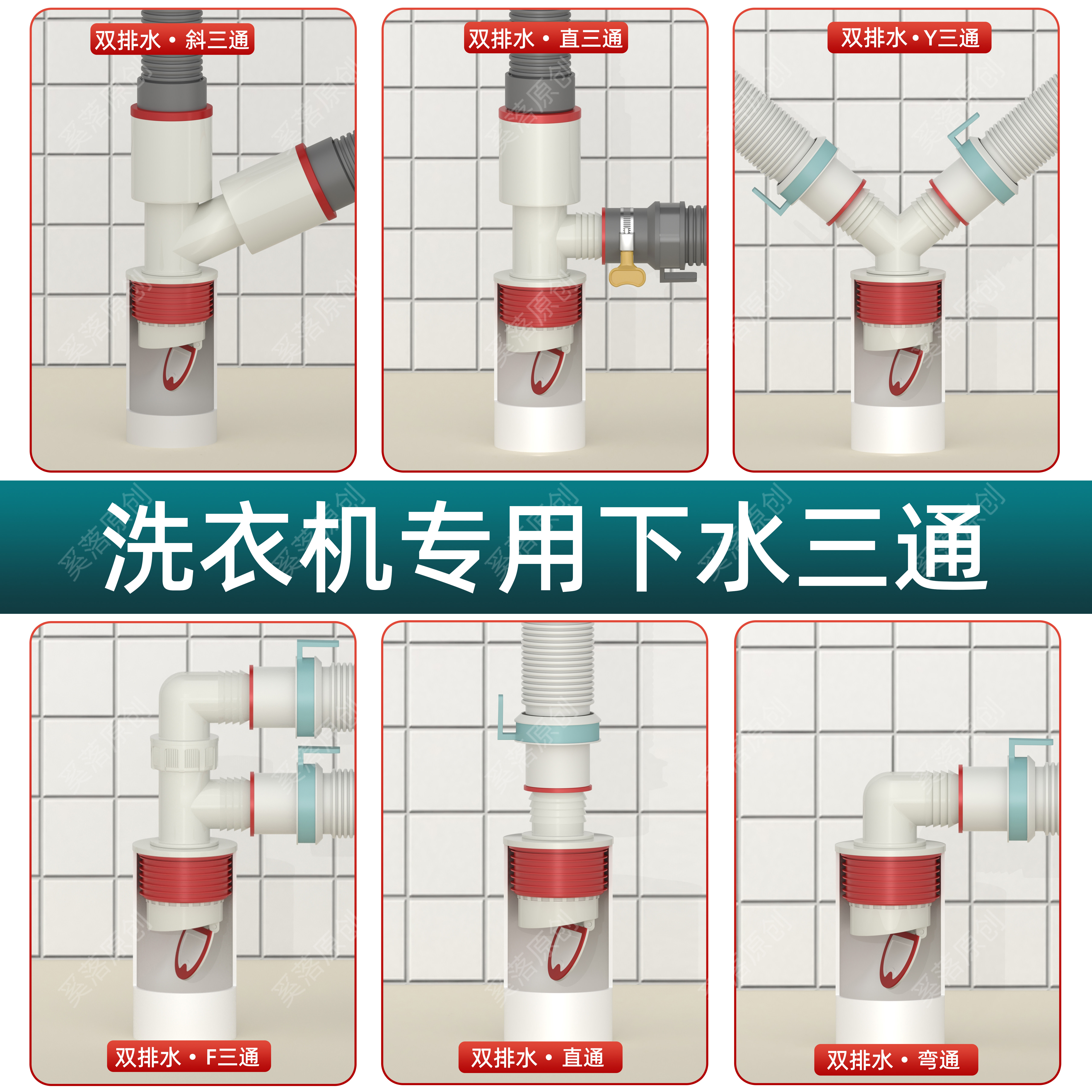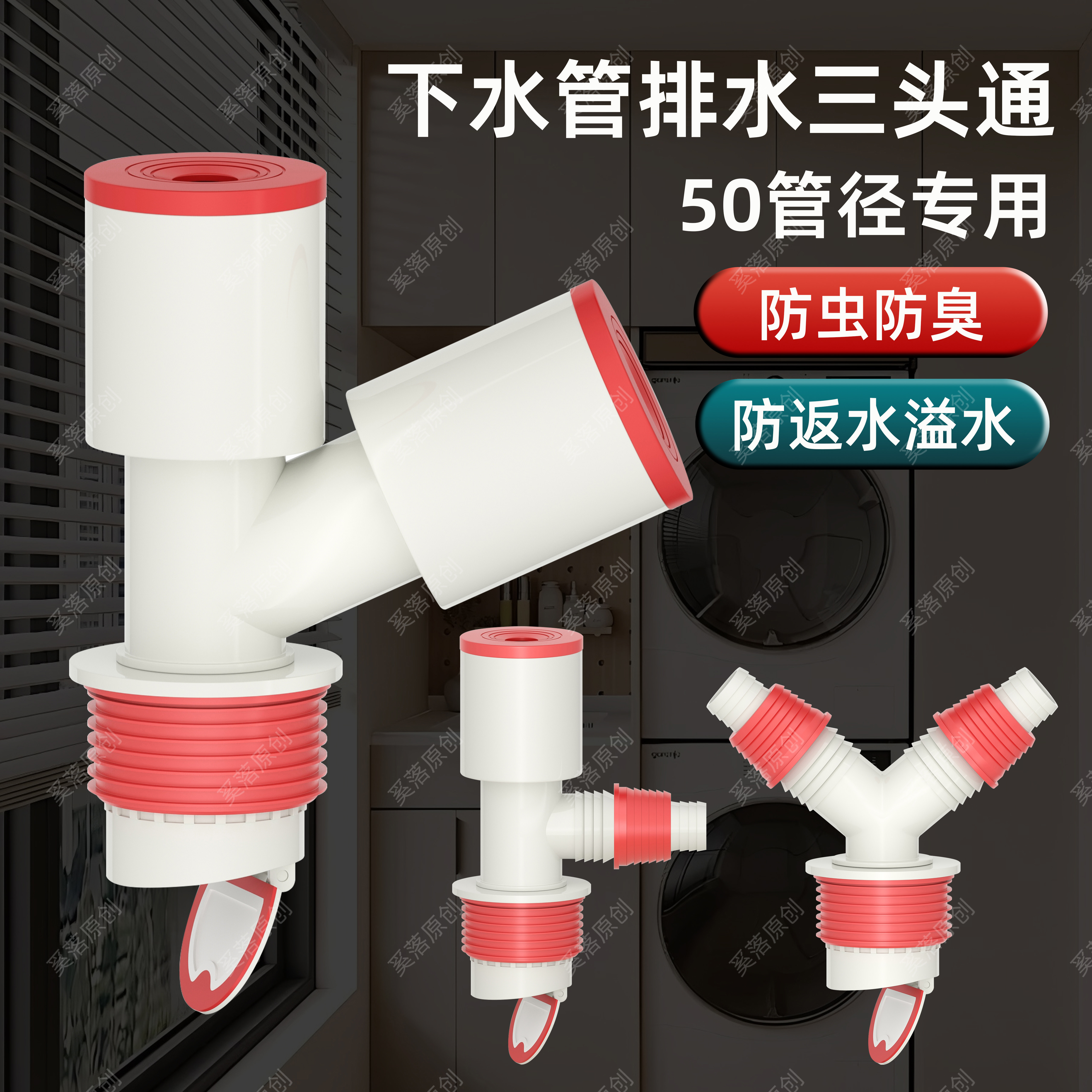 📚 洗衣机排水管地漏接头二合一下水管道分流器阳台防溢水通用三头通