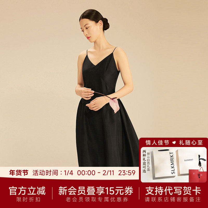 📚 SLKMRKT乃丝真丝桑蚕丝连衣裙双宫茧新款高端气质法式裙气质长裙