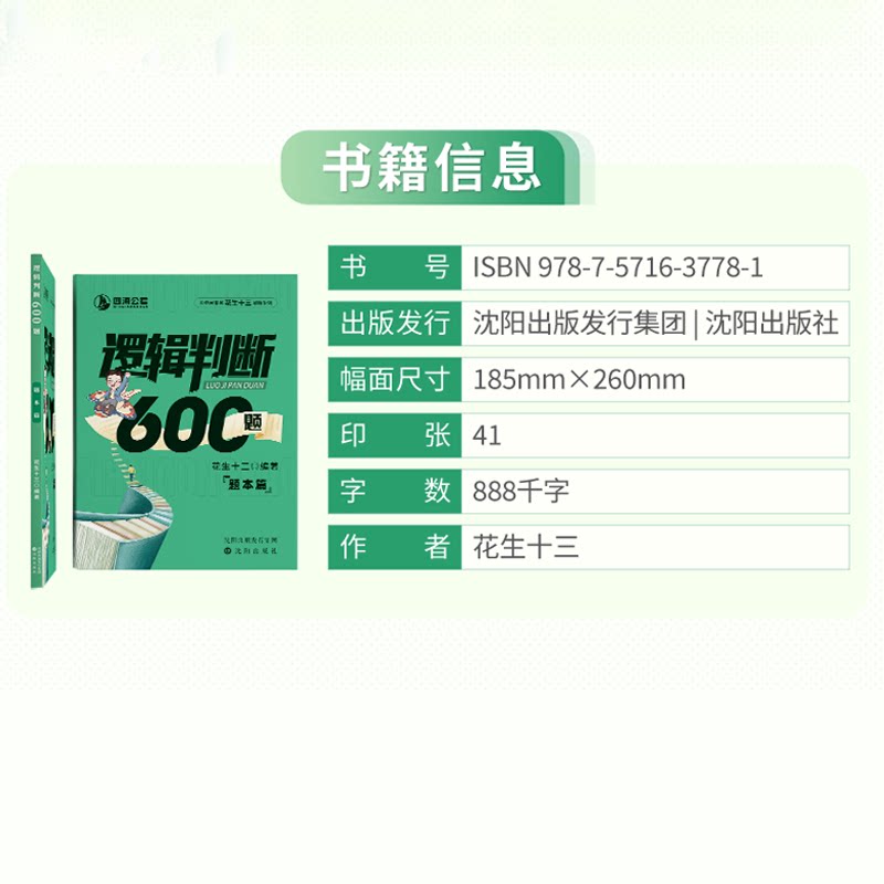 📚 【逻辑判断600题】花生十三四海公务员考试用书国考省考事业单位行测题本解析考试适用