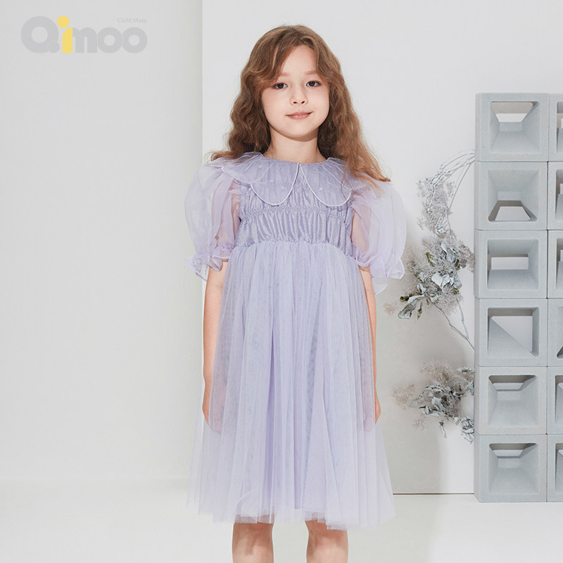 📚 淇木Qimoo童装女童轻盈网纱梦幻朦胧绣花公主连衣裙QMT1LP301C