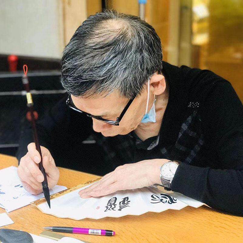 📚 王兴基空白宣纸折扇题字黄精男扇文湾竹中式古风民俗扇