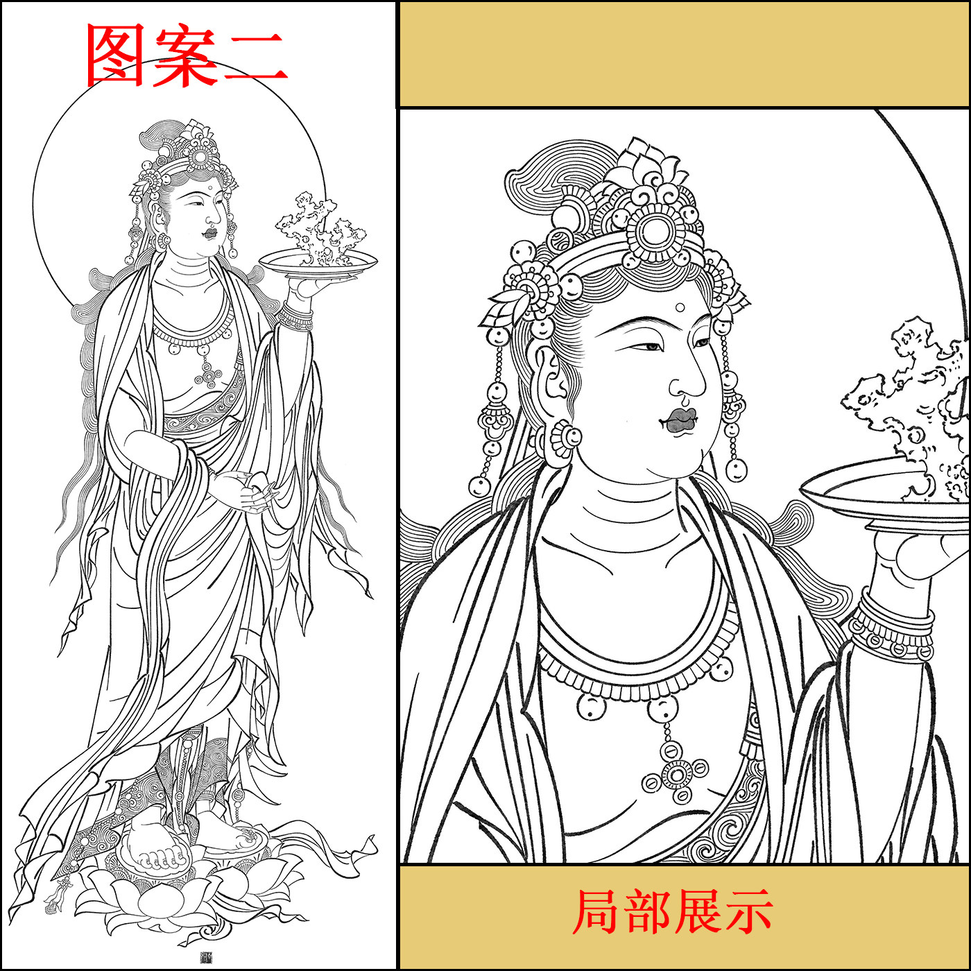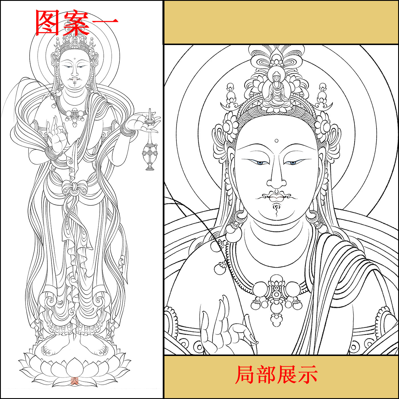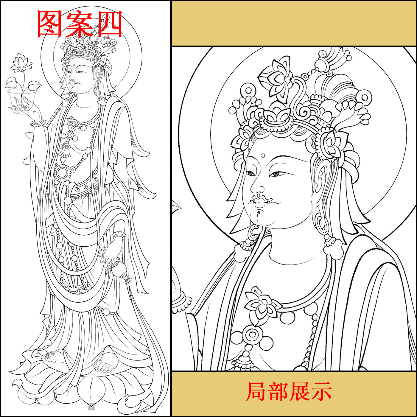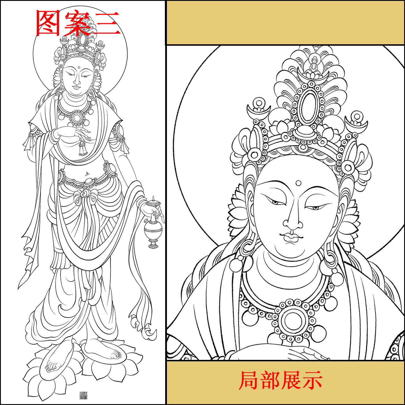 📚 工笔画打印白描底稿佛像站像高清线稿初学者临摹参考创作