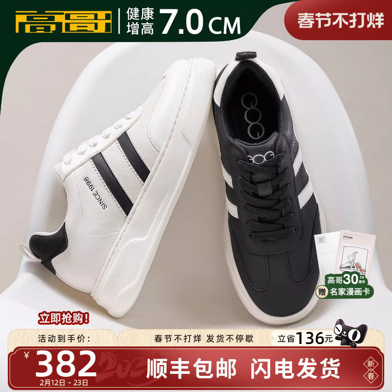 📚 高哥增高德训鞋男款头层牛皮板鞋新款轻便小白鞋厚底内增高阿甘鞋