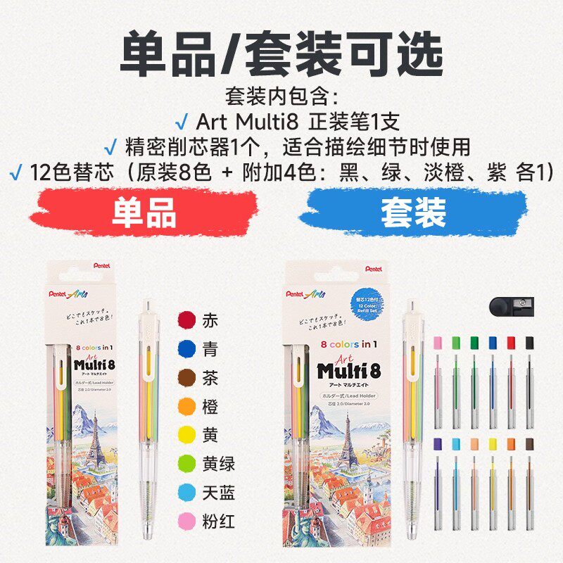 📚 日本Pentel派通Multi+8彩色铅笔替换铅芯八色铅笔套装文具大赏