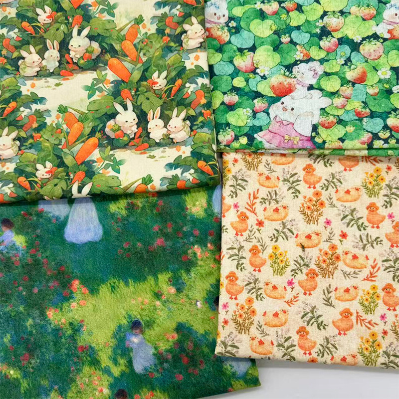 📚 原创卡通森系印花布加密棉麻布料diy手工布头包包猫窝布装饰桌布